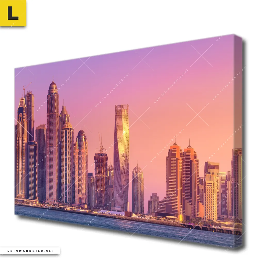 Du konfigurierst Dein individuelles Leinwandbild | Sonnenaufgang in Dubai | Querformat und wir produzieren es NEU für Dich. Unsere Architektur - Gebäude, Städte - Skylines Leinwände sind KEINE Lagerware. Du bist Dir unsicher, welches Motiv oder Format das richtige für dein individuelles Keilrahmenbild ist, dann helfen wir dir gerne weiter und beraten dich!