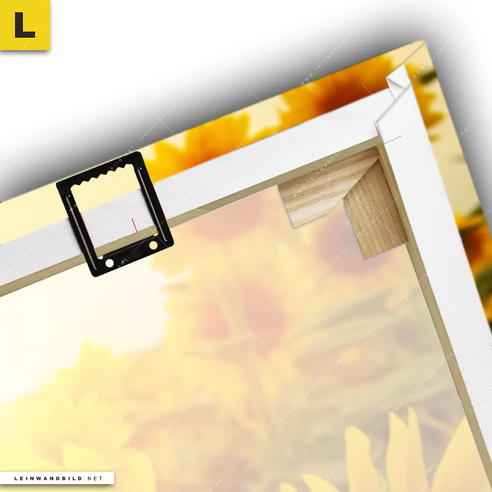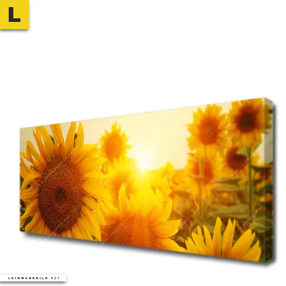 Du konfigurierst Dein individuelles Leinwandbild | Sonnenblumen im Abendlicht | Panorama und wir produzieren es NEU für Dich. Unsere Landschaften, Blumen - Botanik Leinwände sind KEINE Lagerware. Du bist Dir unsicher, welches Motiv oder Format das richtige für dein individuelles Keilrahmenbild ist, dann helfen wir dir gerne weiter und beraten dich!