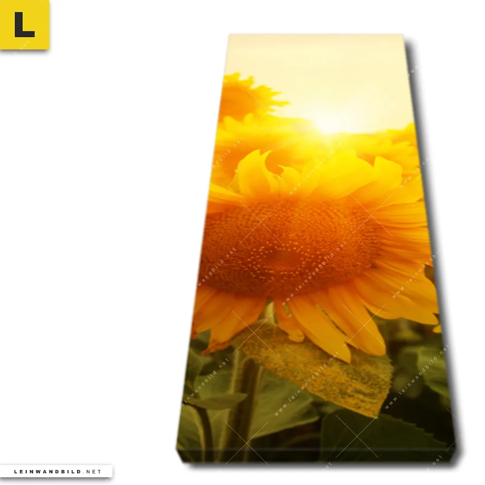 Du konfigurierst Dein individuelles Leinwandbild | Sonnenblumen im Abendlicht | Schmal und wir produzieren es NEU für Dich. Unsere Landschaften, Blumen - Botanik Leinwände sind KEINE Lagerware. Du bist Dir unsicher, welches Motiv oder Format das richtige für dein individuelles Keilrahmenbild ist, dann helfen wir dir gerne weiter und beraten dich!