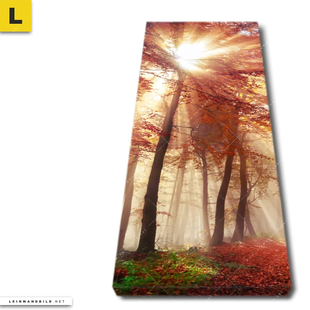 Du konfigurierst Dein individuelles Leinwandbild | Sonnenlicht im nebligen Wald | Schmal und wir produzieren es NEU für Dich. Unsere Landschaften, Wald - Bäume Leinwände sind KEINE Lagerware. Du bist Dir unsicher, welches Motiv oder Format das richtige für dein individuelles Keilrahmenbild ist, dann helfen wir dir gerne weiter und beraten dich!