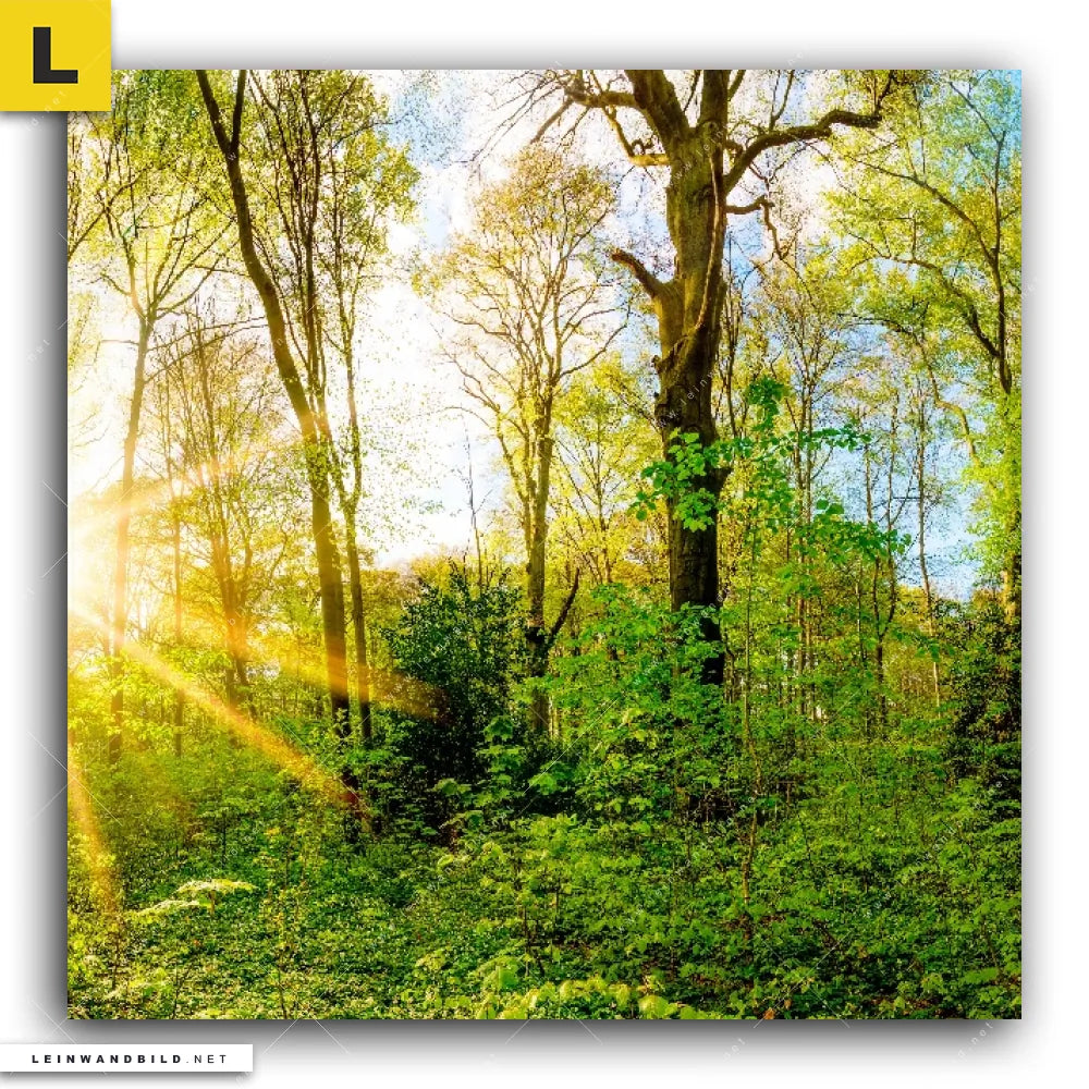 Du konfigurierst Dein individuelles Leinwandbild | Sonnenlicht im Wald | Quadrat und wir produzieren es NEU für Dich. Unsere Landschaften, Wald - Bäume Leinwände sind KEINE Lagerware. Du bist Dir unsicher, welches Motiv oder Format das richtige für dein individuelles Keilrahmenbild ist, dann helfen wir dir gerne weiter und beraten dich!