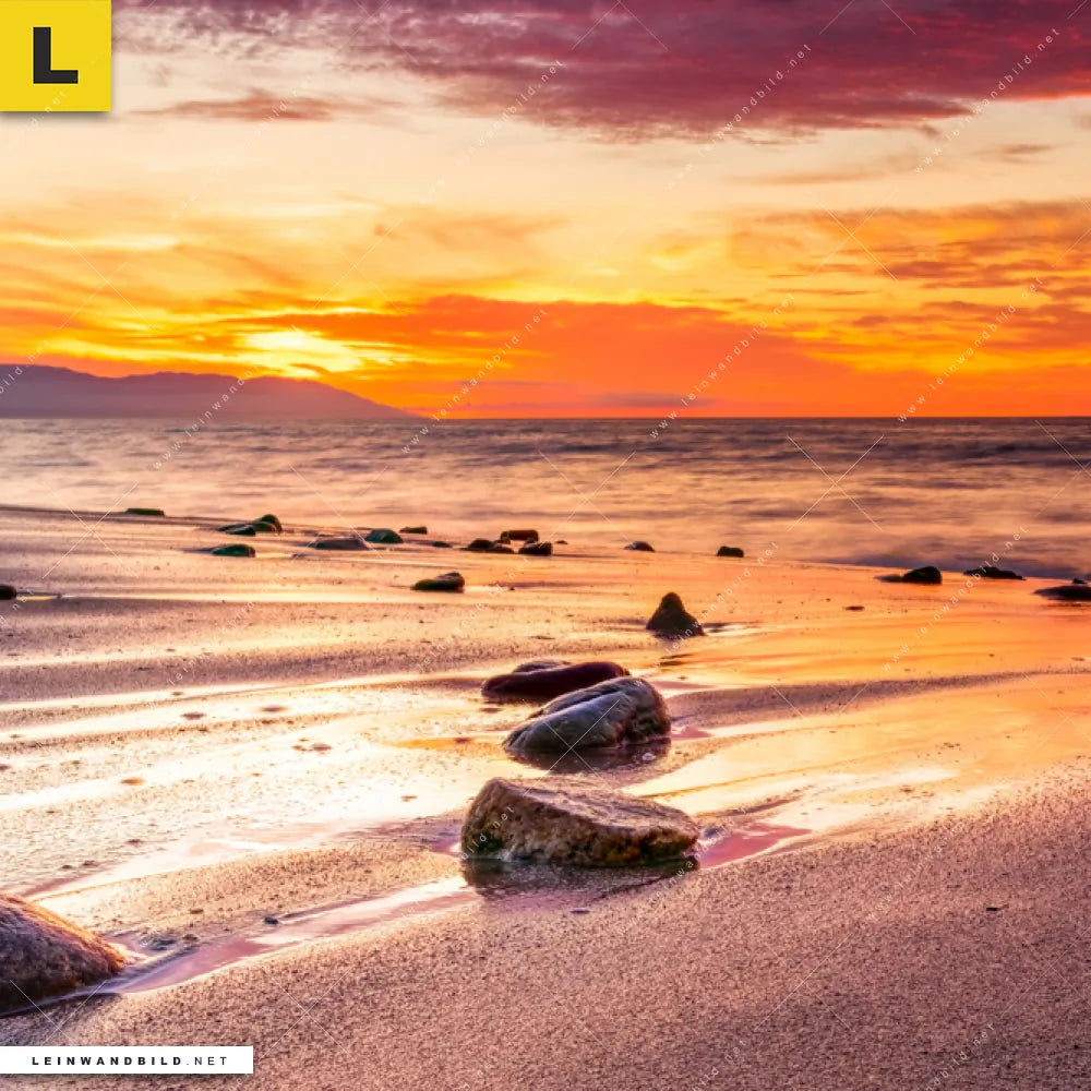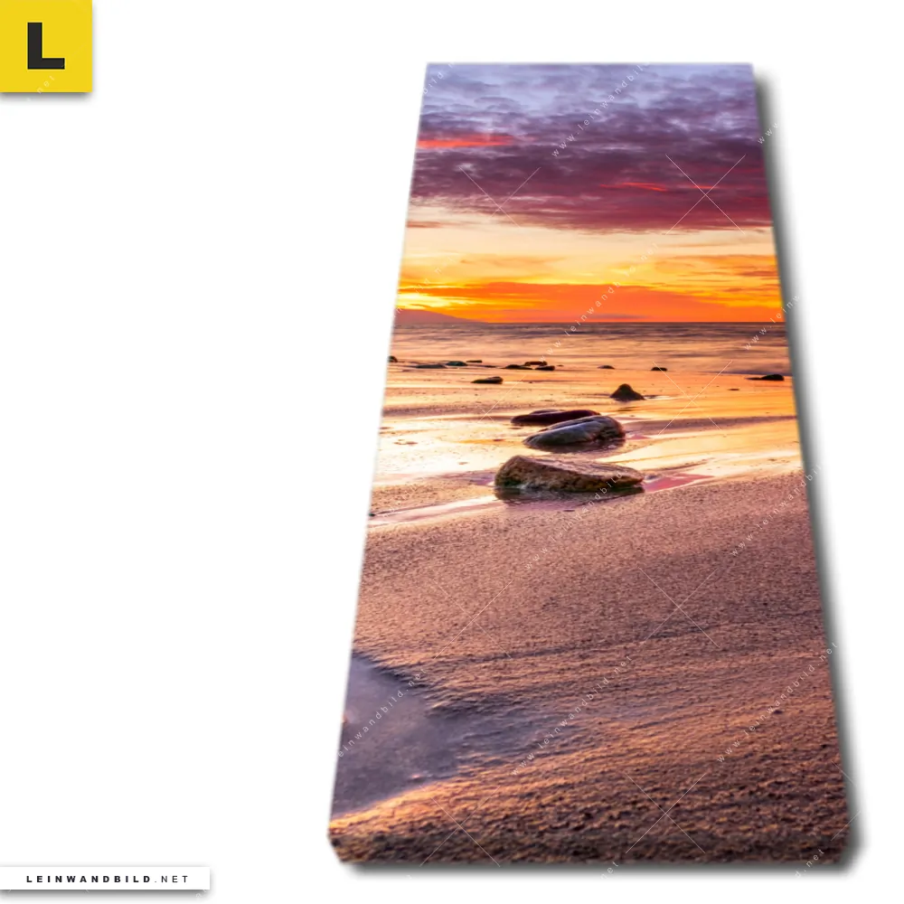 Du konfigurierst Dein individuelles Leinwandbild | Sonnenuntergang am Strand mit Felsen | Schmal und wir produzieren es NEU für Dich. Unsere Landschaften, Strand - Meer Leinwände sind KEINE Lagerware. Du bist Dir unsicher, welches Motiv oder Format das richtige für dein individuelles Keilrahmenbild ist, dann helfen wir dir gerne weiter und beraten dich!