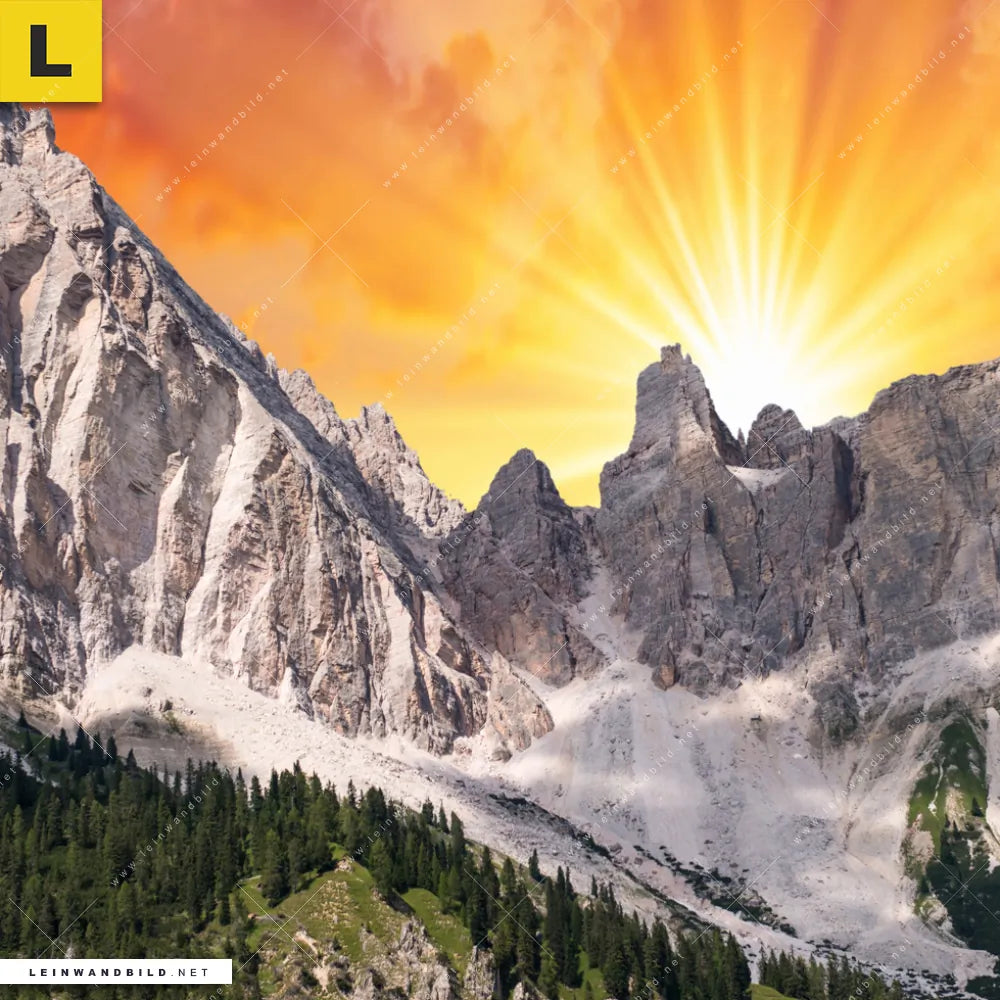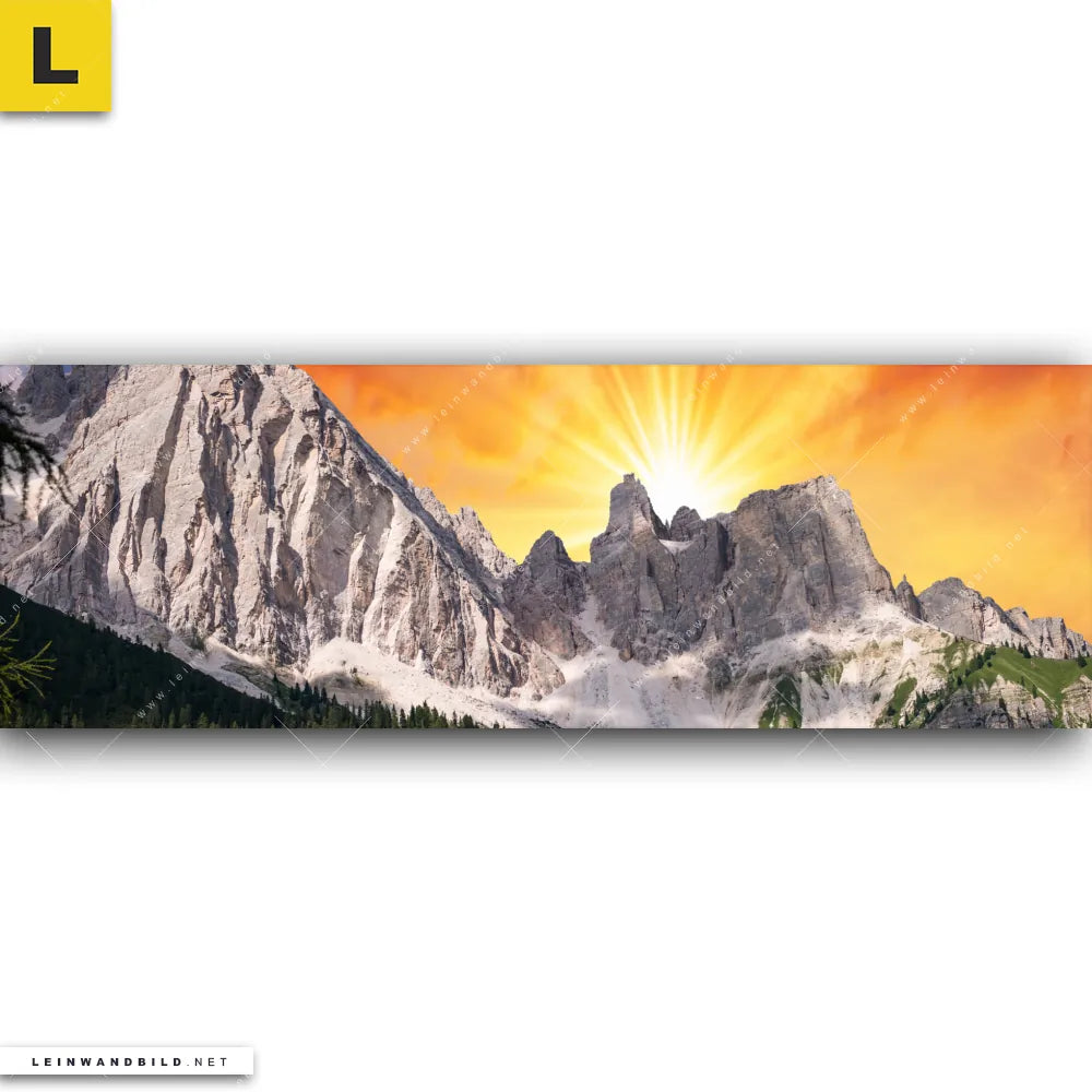 Du konfigurierst Dein individuelles Leinwandbild | Sonnenuntergang in den Bergen | Panorama und wir produzieren es NEU für Dich. Unsere Landschaften Leinwände sind KEINE Lagerware. Du bist Dir unsicher, welches Motiv oder Format das richtige für dein individuelles Keilrahmenbild ist, dann helfen wir dir gerne weiter und beraten dich!