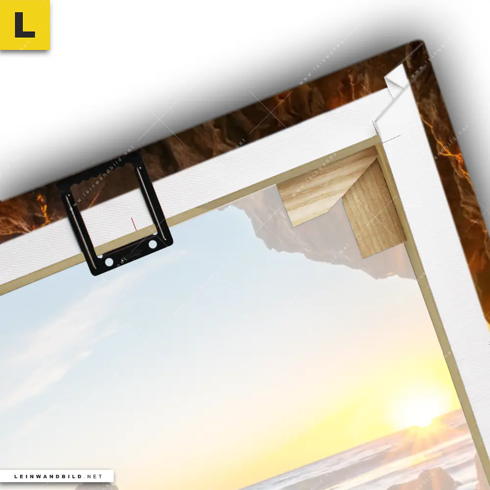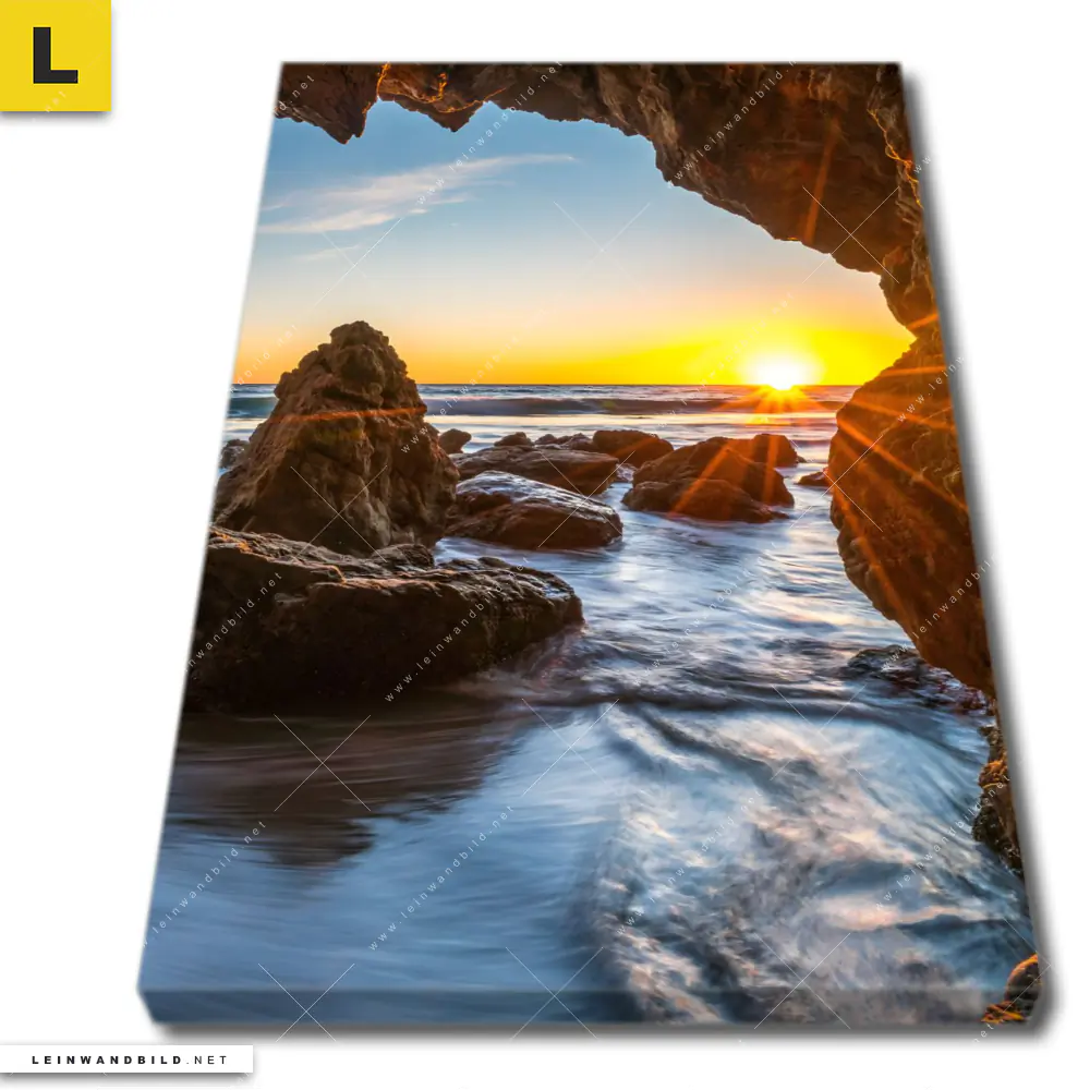 Du konfigurierst Dein individuelles Leinwandbild | Sonnenuntergang in Meeresgrotte | Hochformat und wir produzieren es NEU für Dich. Unsere Landschaften, Strand - Meer Leinwände sind KEINE Lagerware. Du bist Dir unsicher, welches Motiv oder Format das richtige für dein individuelles Keilrahmenbild ist, dann helfen wir dir gerne weiter und beraten dich!