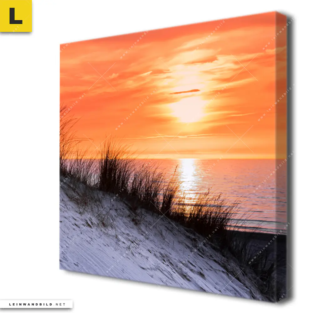 Du konfigurierst Dein individuelles Leinwandbild | Sonnenuntergang mit Düne und Meer | Quadrat und wir produzieren es NEU für Dich. Unsere Landschaften, Strand - Meer Leinwände sind KEINE Lagerware. Du bist Dir unsicher, welches Motiv oder Format das richtige für dein individuelles Keilrahmenbild ist, dann helfen wir dir gerne weiter und beraten dich!