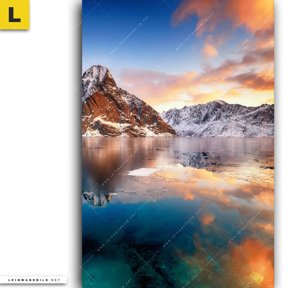 Du konfigurierst Dein individuelles Leinwandbild | Sonnenuntergang Norwegen | Hochformat und wir produzieren es NEU für Dich. Unsere Landschaften Leinwände sind KEINE Lagerware. Du bist Dir unsicher, welches Motiv oder Format das richtige für dein individuelles Keilrahmenbild ist, dann helfen wir dir gerne weiter und beraten dich!