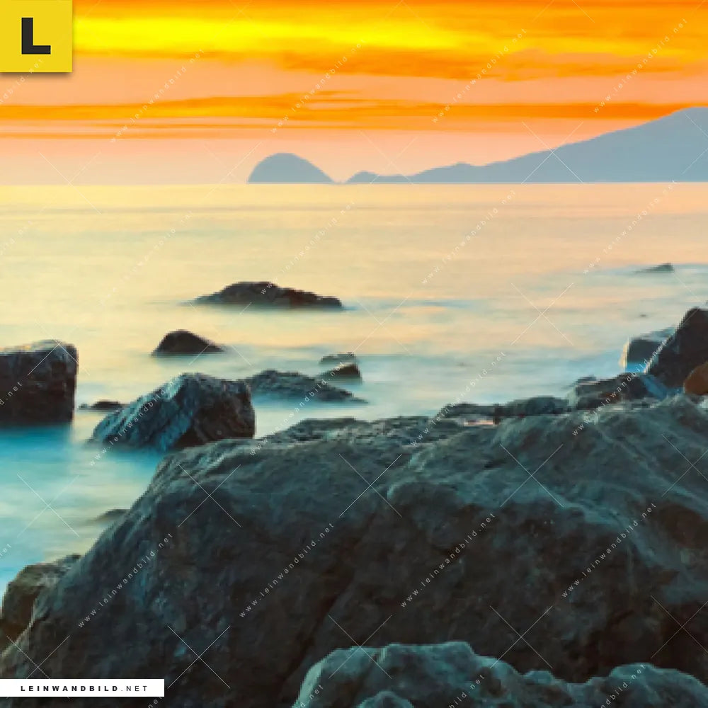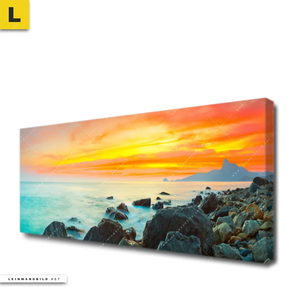 Du konfigurierst Dein individuelles Leinwandbild | Sonnenuntergang über dem Meer | Panorama und wir produzieren es NEU für Dich. Unsere Landschaften, Strand - Meer Leinwände sind KEINE Lagerware. Du bist Dir unsicher, welches Motiv oder Format das richtige für dein individuelles Keilrahmenbild ist, dann helfen wir dir gerne weiter und beraten dich!