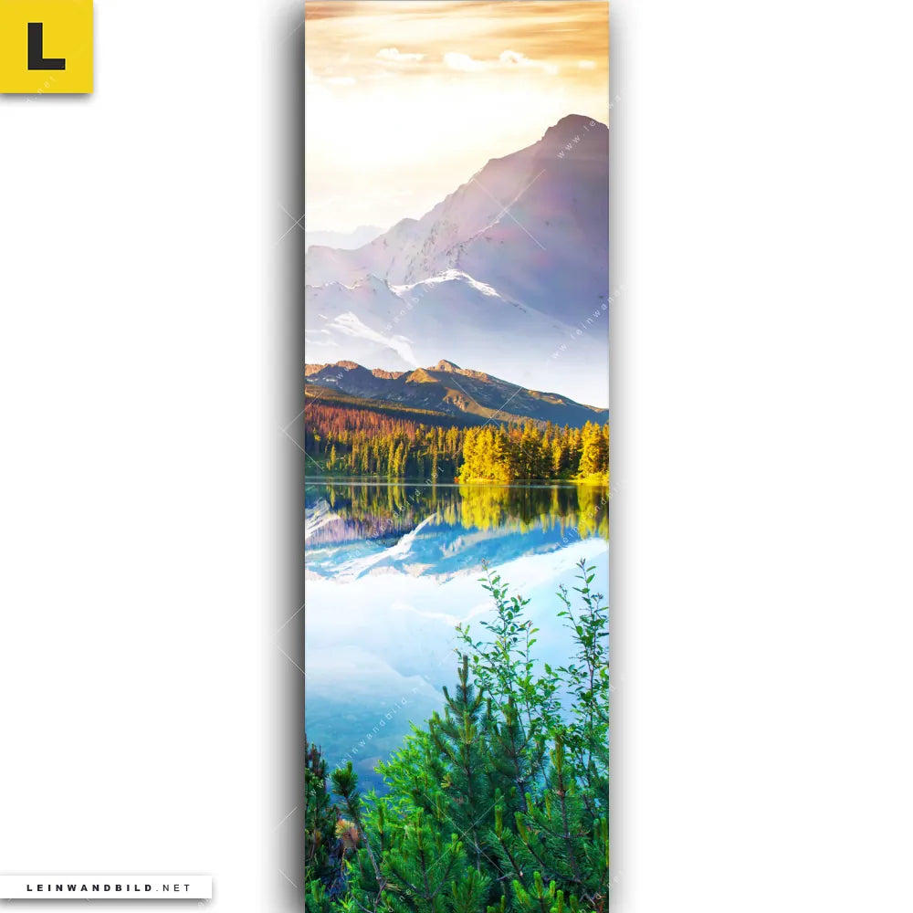Du konfigurierst Dein individuelles Leinwandbild | Sonniger Tag am Bergsee | Schmal und wir produzieren es NEU für Dich. Unsere Landschaften Leinwände sind KEINE Lagerware. Du bist Dir unsicher, welches Motiv oder Format das richtige für dein individuelles Keilrahmenbild ist, dann helfen wir dir gerne weiter und beraten dich!