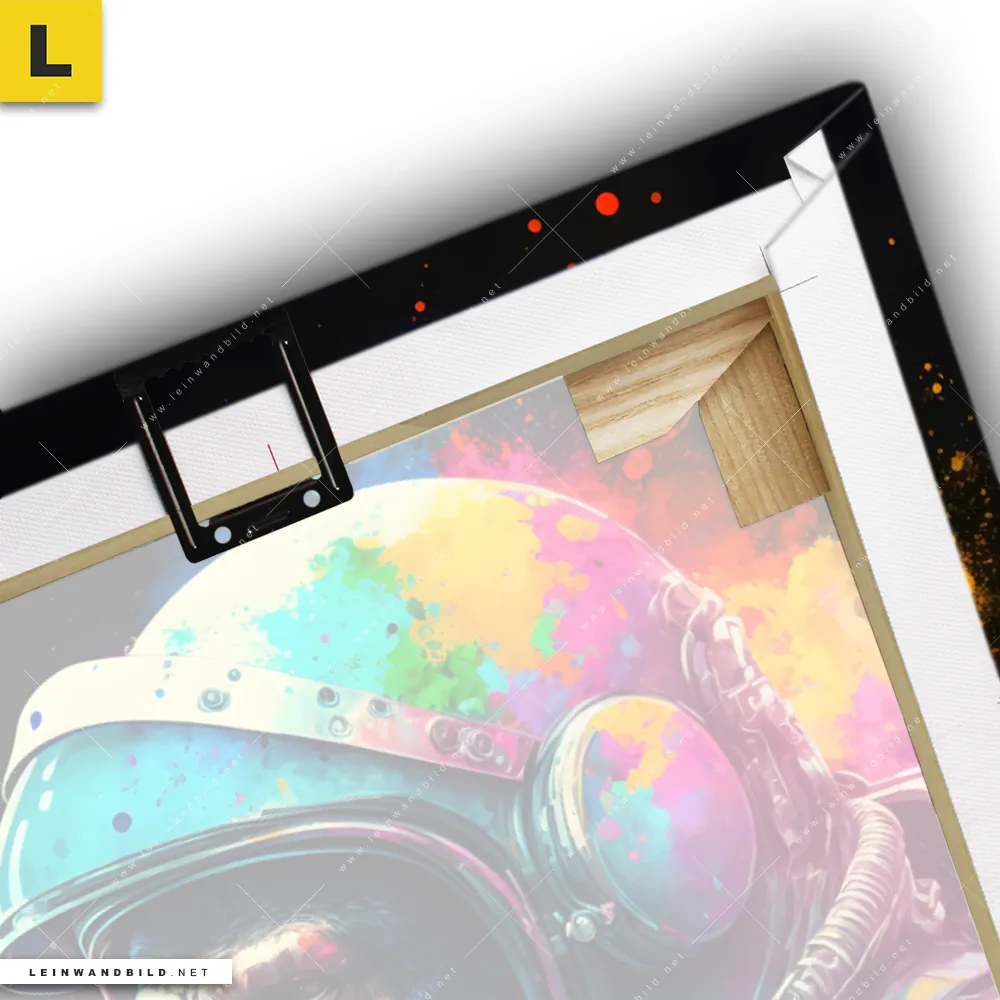 Dann sollte das Leinwandbild | Space Monkey | Hochformat den Weg zu Dir finden. Die moderne Fotoleinwand Farbenfroher Affe im Weltall fügt sich als Eye-Catcher harmonisch in jedes Bar - Gastronomie, Wohnzimmer - Schlafzimmer, Flur - Eingangsbereich, Büro - Kanzlei, Arzt - Praxis Raumkonzept ein.