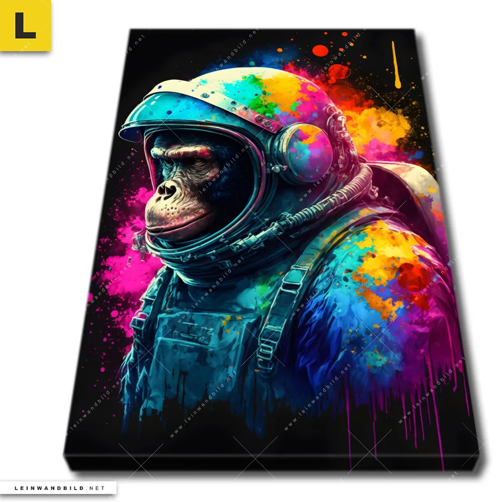 Du bist auf der Suche nach einem XXL Tierwelt Leinwandbild und Begriffe wie Tier, Affe, Monkey, Chimpanzee, Schimpanse, Farbe, Farbspritzer, Austronaut, Weltall, Space haben Dich auf der Suche nach Deinem neuen Hochformat Wandbild auf Leinwand inspiriert? Farben wie Bunt, Schwarz dürfen auf Deinem neuen vertikalen Keilrahmenbild nicht fehlen und Leinwände im Abstrakt, Modern Art, Pop Art Stil passen perfekt zu Deinem Einrichtungsstil?