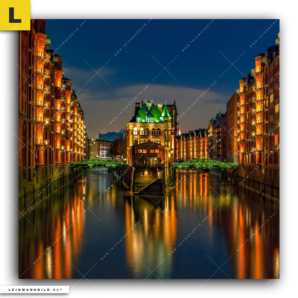 Du konfigurierst Dein individuelles Leinwandbild | Speicherstadt Hamburg | Quadrat und wir produzieren es NEU für Dich. Unsere Architektur - Gebäude, Städte - Skylines Leinwände sind KEINE Lagerware. Du bist Dir unsicher, welches Motiv oder Format das richtige für dein individuelles Keilrahmenbild ist, dann helfen wir dir gerne weiter und beraten dich!