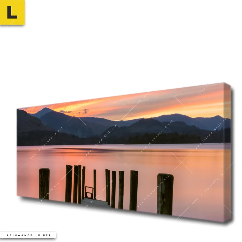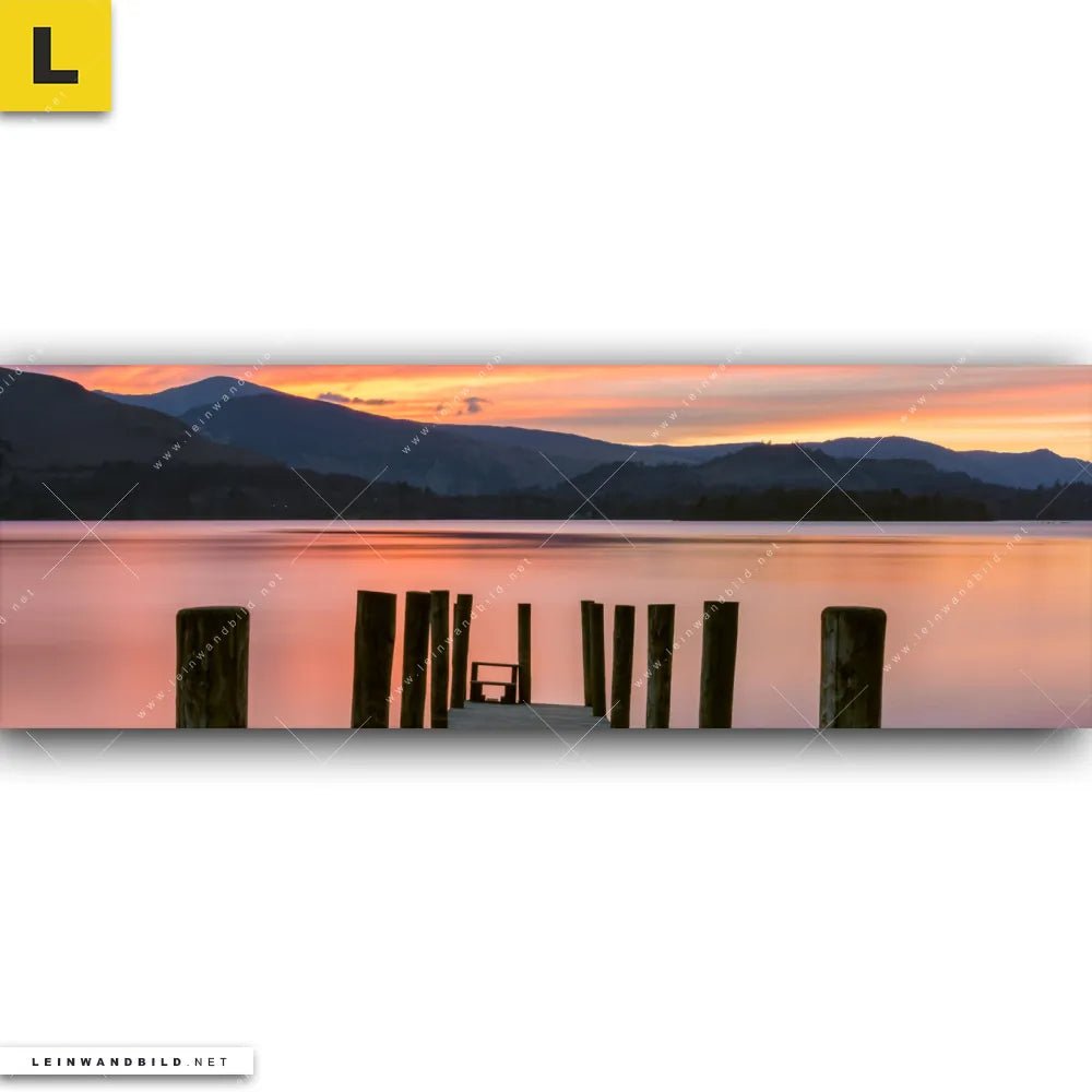 Du konfigurierst Dein individuelles Leinwandbild | Steg in den Sonnenuntergang | Panorama und wir produzieren es NEU für Dich. Unsere Strand - Meer, Landschaften Leinwände sind KEINE Lagerware. Du bist Dir unsicher, welches Motiv oder Format das richtige für dein individuelles Keilrahmenbild ist, dann helfen wir dir gerne weiter und beraten dich!