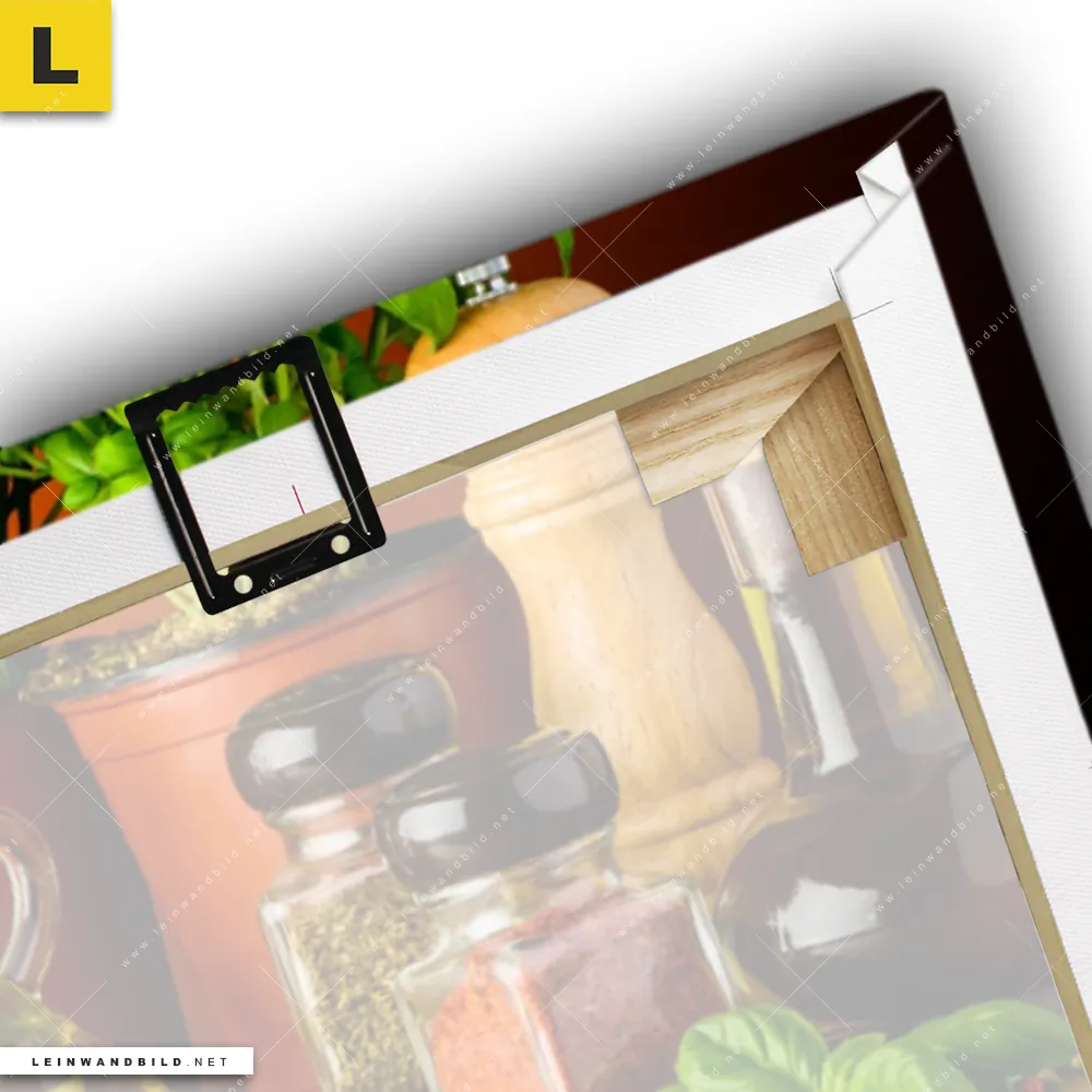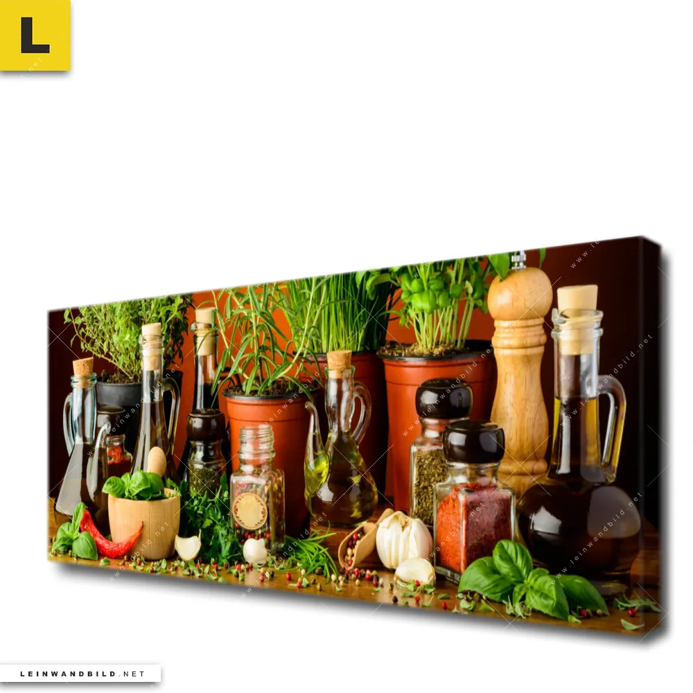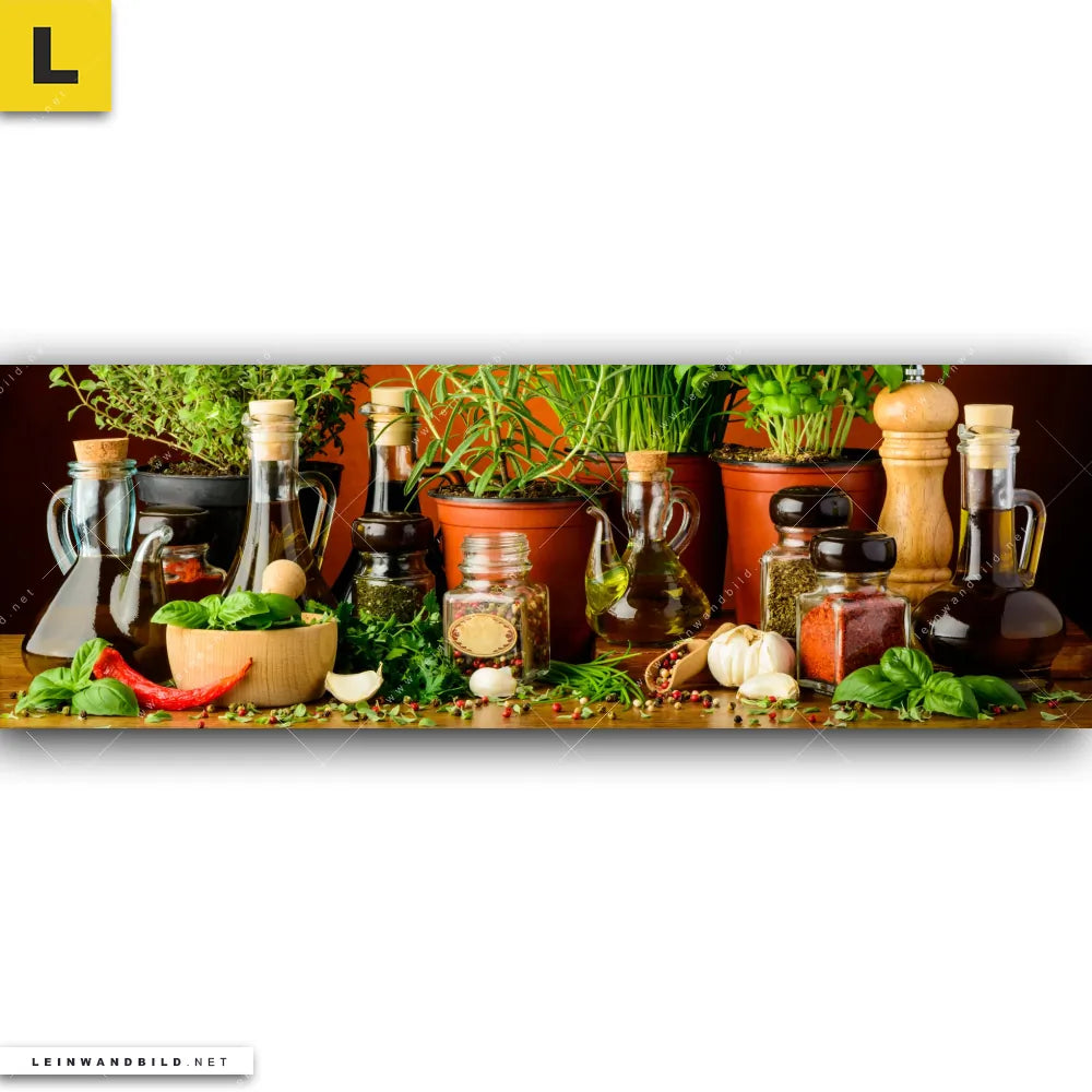 Du konfigurierst Dein individuelles Leinwandbild | Stillleben mit mediterranen Kräutern | Panorama und wir produzieren es NEU für Dich. Unsere Essen - Trinken Leinwände sind KEINE Lagerware. Du bist Dir unsicher, welches Motiv oder Format das richtige für dein individuelles Keilrahmenbild ist, dann helfen wir dir gerne weiter und beraten dich!