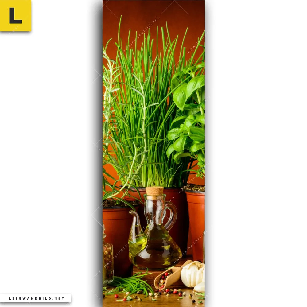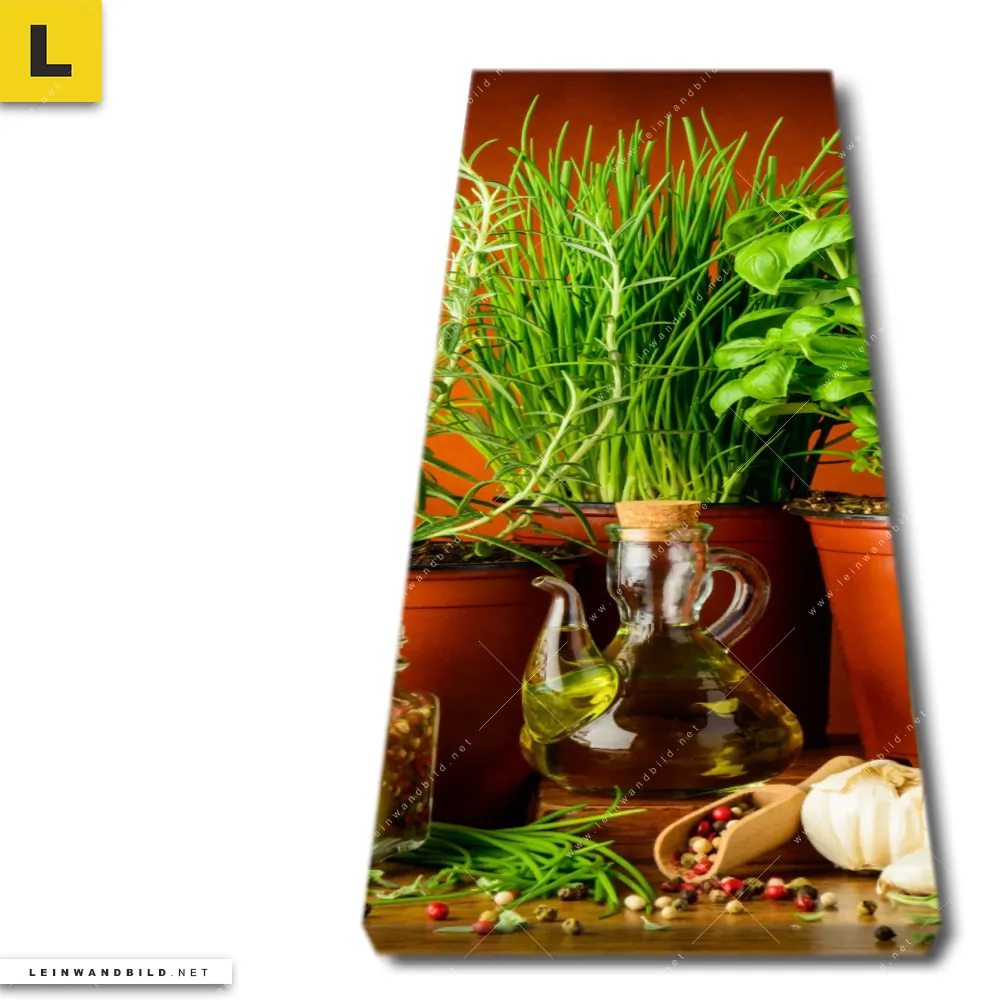 Du konfigurierst Dein individuelles Leinwandbild | Stillleben mit mediterranen Kräutern | Schmal und wir produzieren es NEU für Dich. Unsere Essen - Trinken Leinwände sind KEINE Lagerware. Du bist Dir unsicher, welches Motiv oder Format das richtige für dein individuelles Keilrahmenbild ist, dann helfen wir dir gerne weiter und beraten dich!