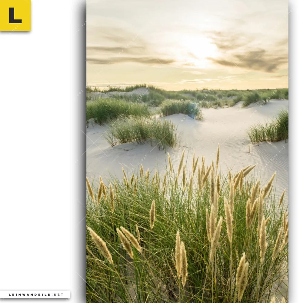 Du konfigurierst Dein individuelles Leinwandbild | Strand mit Sanddünen | Hochformat und wir produzieren es NEU für Dich. Unsere Landschaften, Strand - Meer Leinwände sind KEINE Lagerware. Du bist Dir unsicher, welches Motiv oder Format das richtige für dein individuelles Keilrahmenbild ist, dann helfen wir dir gerne weiter und beraten dich!