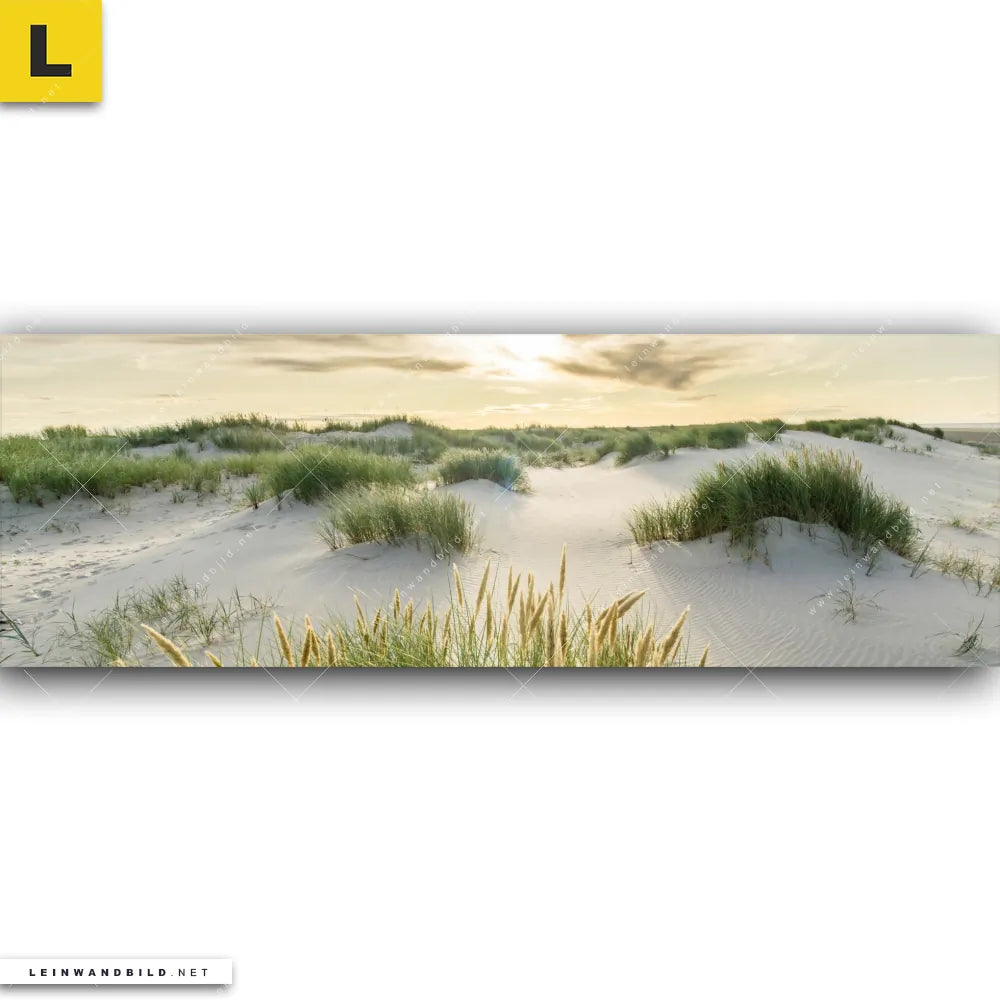 Du konfigurierst Dein individuelles Leinwandbild | Strand mit Sanddünen | Panorama und wir produzieren es NEU für Dich. Unsere Landschaften, Strand - Meer Leinwände sind KEINE Lagerware. Du bist Dir unsicher, welches Motiv oder Format das richtige für dein individuelles Keilrahmenbild ist, dann helfen wir dir gerne weiter und beraten dich!