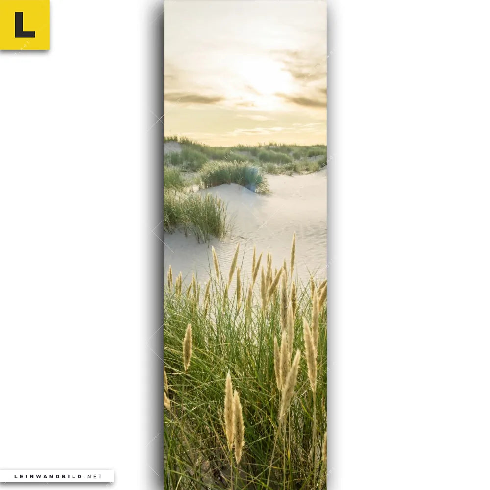 Du konfigurierst Dein individuelles Leinwandbild | Strand mit Sanddünen | Schmal und wir produzieren es NEU für Dich. Unsere Landschaften, Strand - Meer Leinwände sind KEINE Lagerware. Du bist Dir unsicher, welches Motiv oder Format das richtige für dein individuelles Keilrahmenbild ist, dann helfen wir dir gerne weiter und beraten dich!