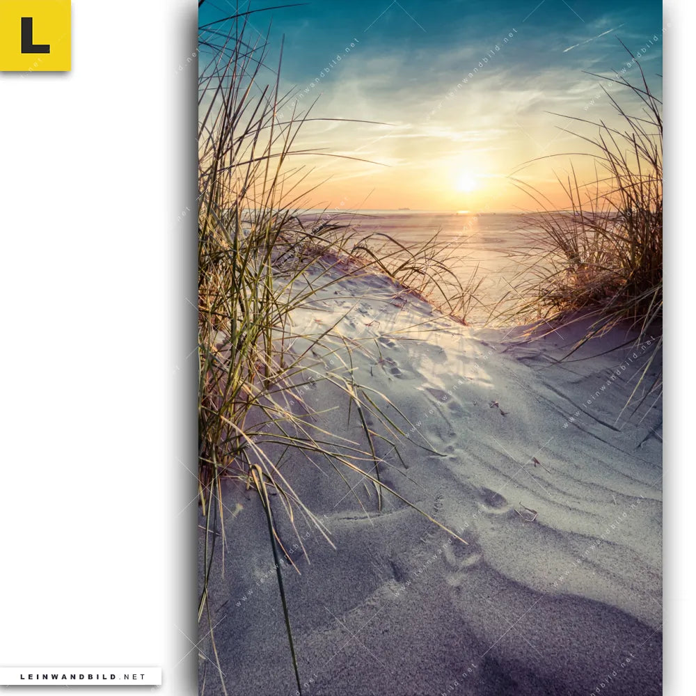 Du konfigurierst Dein individuelles Leinwandbild | Strandlandschaft mit Gras | Hochformat und wir produzieren es NEU für Dich. Unsere Landschaften, Strand - Meer Leinwände sind KEINE Lagerware. Du bist Dir unsicher, welches Motiv oder Format das richtige für dein individuelles Keilrahmenbild ist, dann helfen wir dir gerne weiter und beraten dich!