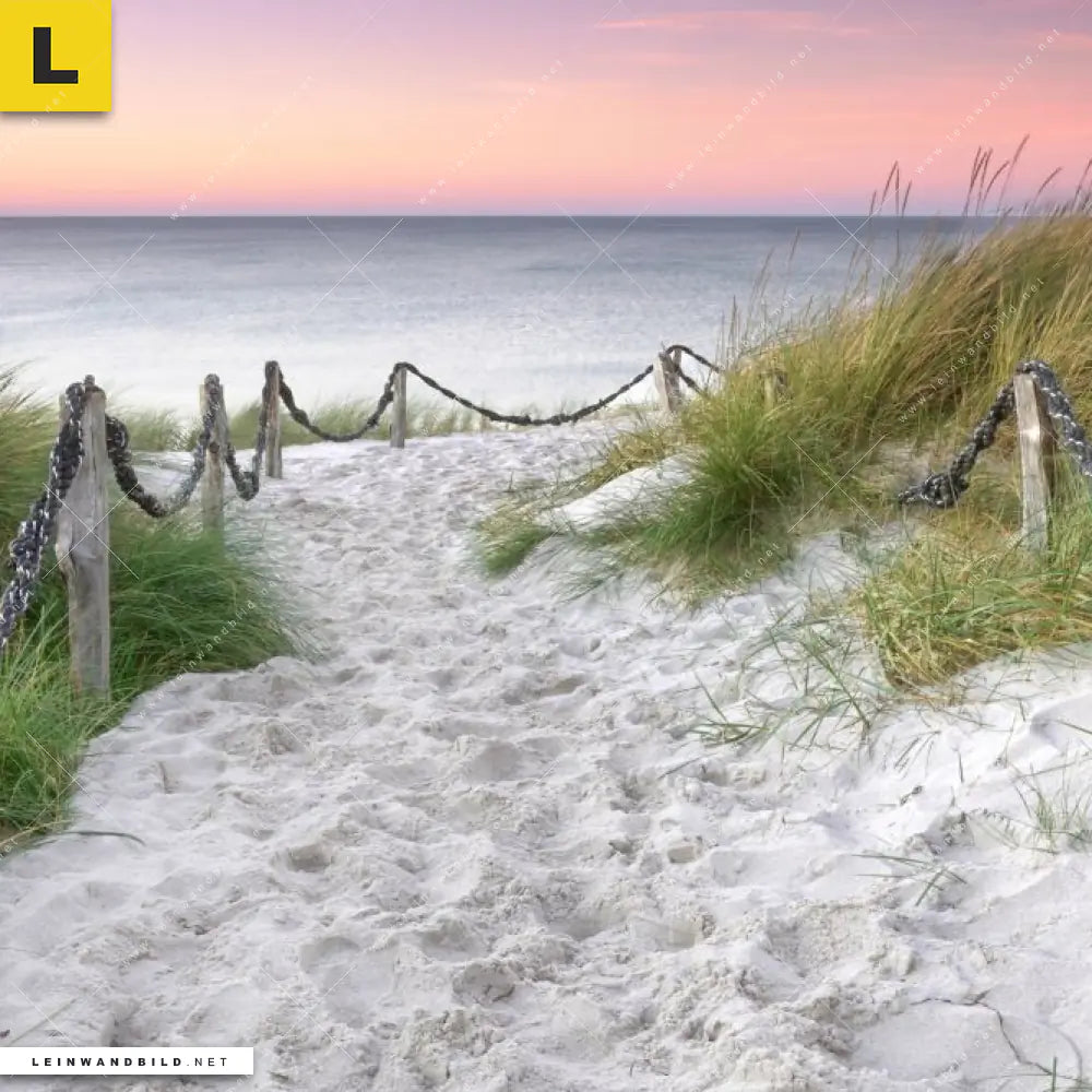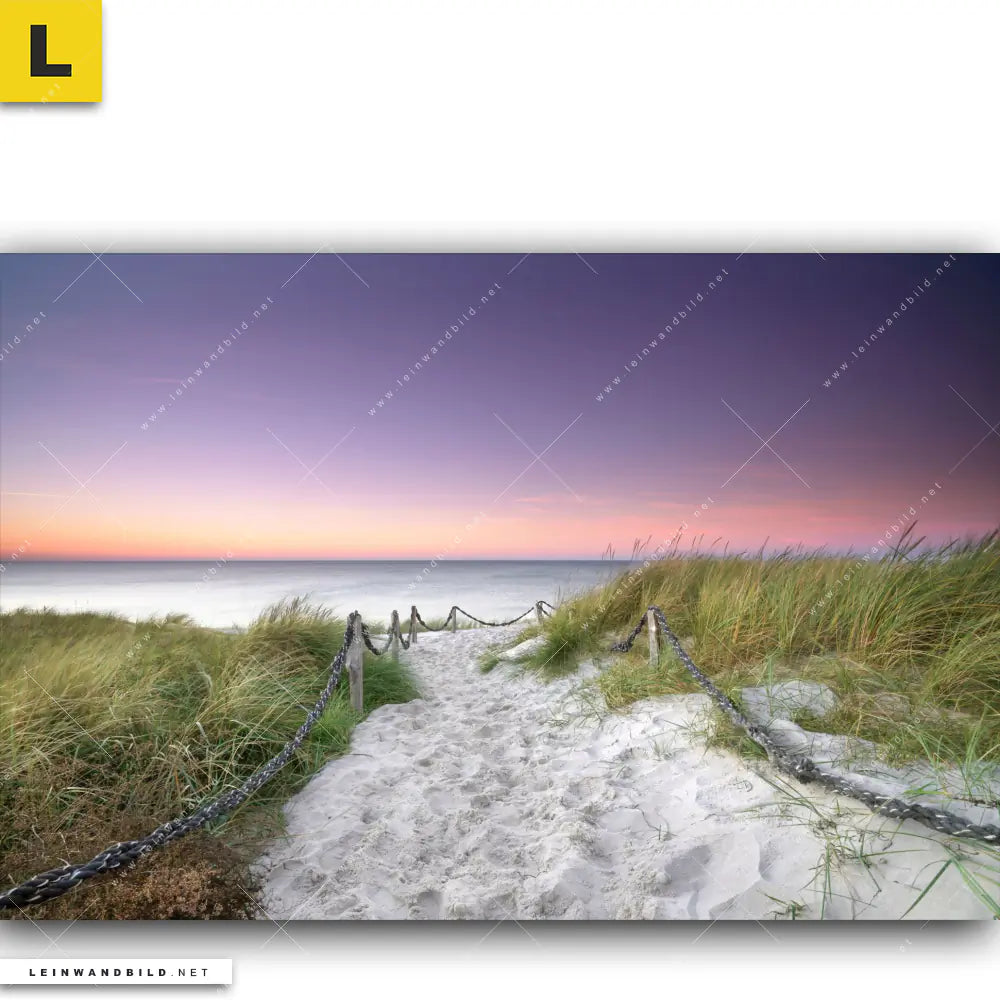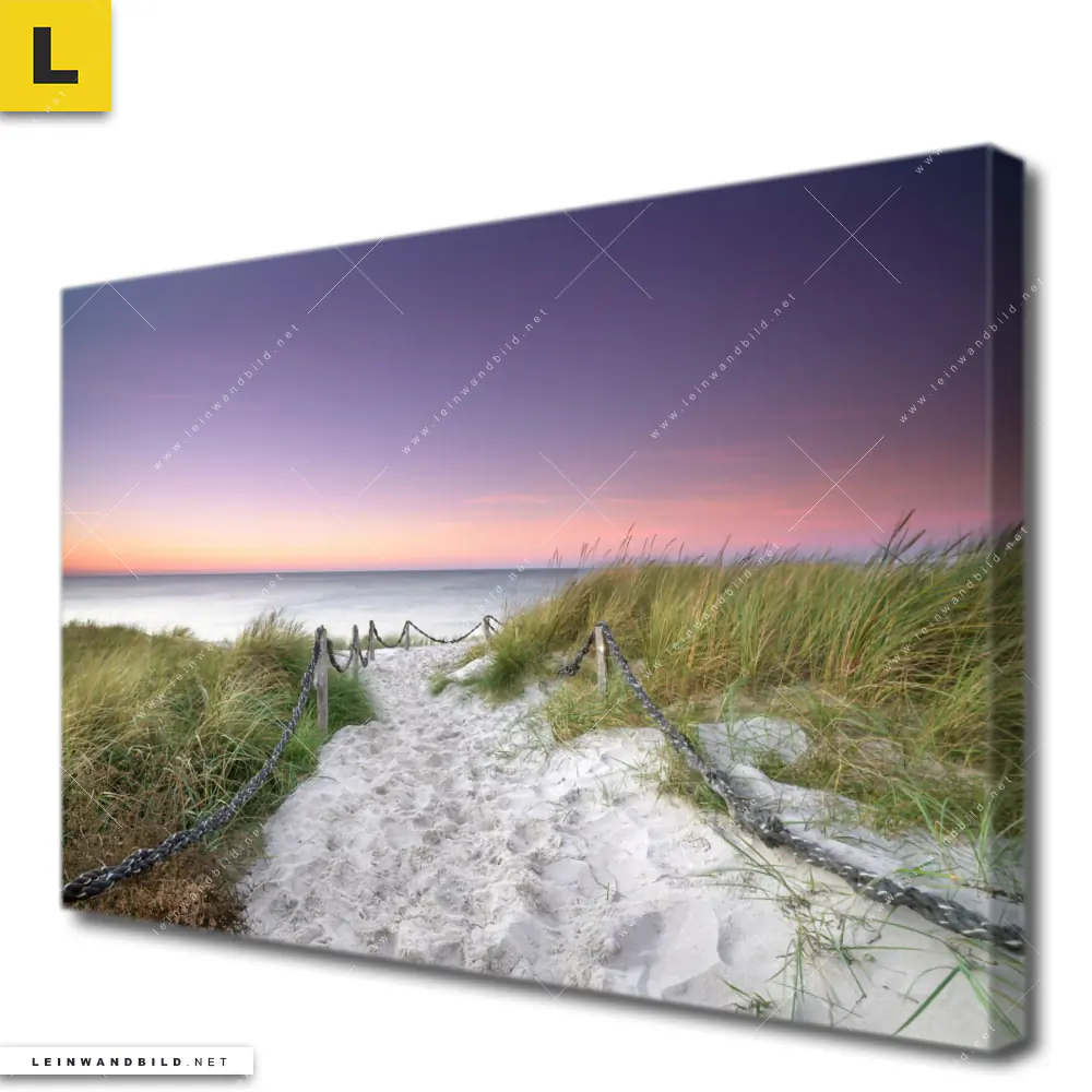 Du konfigurierst Dein individuelles Leinwandbild | Strandweg im Sonnenuntergang | Querformat und wir produzieren es NEU für Dich. Unsere Landschaften, Strand - Meer Leinwände sind KEINE Lagerware. Du bist Dir unsicher, welches Motiv oder Format das richtige für dein individuelles Keilrahmenbild ist, dann helfen wir dir gerne weiter und beraten dich!