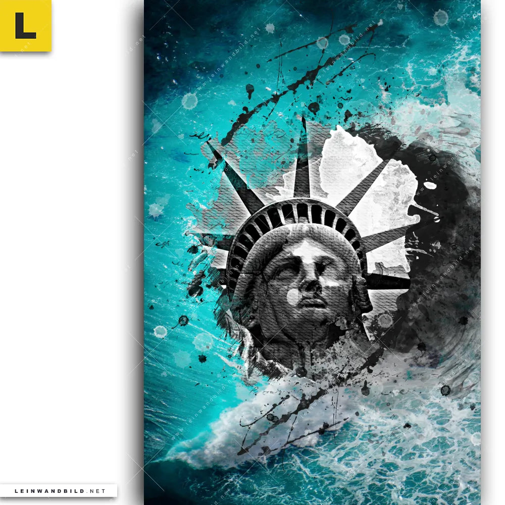 Du bist auf der Suche nach einem XXL Städte - Skylines, Strand - Meer Leinwandbild und Begriffe wie Grunge, Streetart, modern, Freiheitsstatue, Statue of Liberty, Amerika, USA, Meer, Ozean, Wellen haben Dich auf der Suche nach Deinem neuen Hochformat Wandbild auf Leinwand inspiriert? Farben wie Türkis, Grau , Schwarz dürfen auf Deinem neuen vertikalen Keilrahmenbild nicht fehlen und Leinwände im Abstrakt, Grunge, Mixed Media, Modern Art Stil passen perfekt zu Deinem Einrichtungsstil?