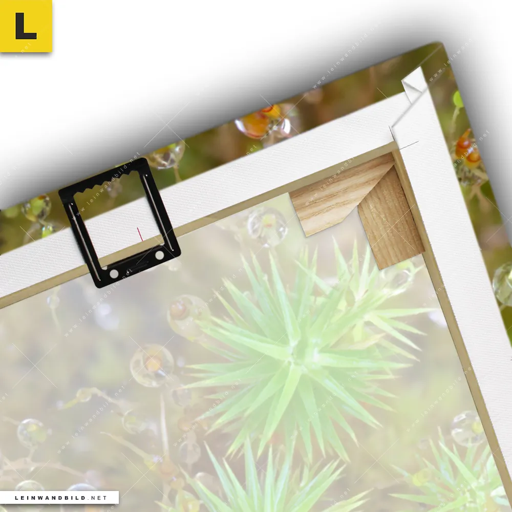 Du konfigurierst Dein individuelles Leinwandbild | Tautropfen auf Moos | Hochformat und wir produzieren es NEU für Dich. Unsere Blumen - Botanik Leinwände sind KEINE Lagerware. Du bist Dir unsicher, welches Motiv oder Format das richtige für dein individuelles Keilrahmenbild ist, dann helfen wir dir gerne weiter und beraten dich!