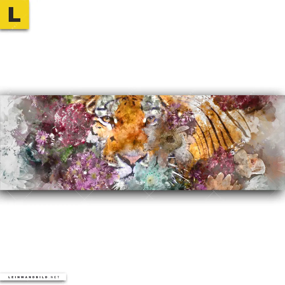 Du konfigurierst Dein individuelles Leinwandbild | Tiger & Blumen | Panorama und wir produzieren es NEU für Dich. Unsere Tierwelt, Blumen - Botanik Leinwände sind KEINE Lagerware. Du bist Dir unsicher, welches Motiv oder Format das richtige für dein individuelles Keilrahmenbild ist, dann helfen wir dir gerne weiter und beraten dich!
