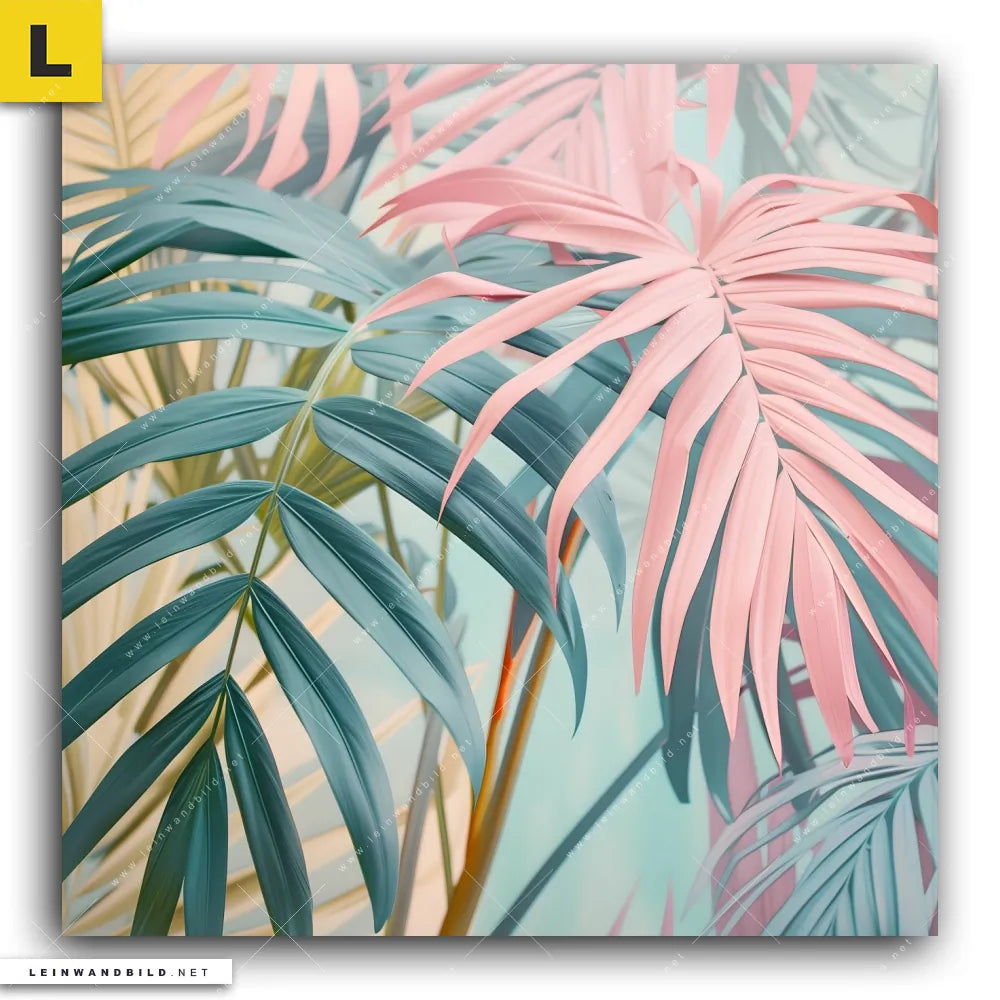 Du konfigurierst Dein individuelles Leinwandbild | Tropische Blätter in Pastellfarben | Quadrat und wir produzieren es NEU für Dich. Unsere Blumen - Botanik, Muster - Texturen Leinwände sind KEINE Lagerware. Du bist Dir unsicher, welches Motiv oder Format das richtige für dein individuelles Keilrahmenbild ist, dann helfen wir dir gerne weiter und beraten dich!