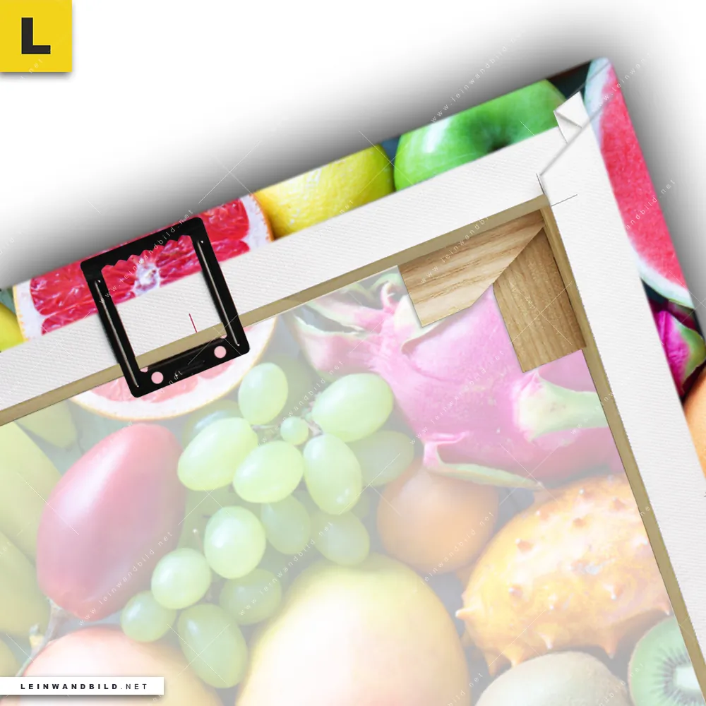 Du konfigurierst Dein individuelles Leinwandbild | Tropische Früchte | Hochformat und wir produzieren es NEU für Dich. Unsere Essen - Trinken Leinwände sind KEINE Lagerware. Du bist Dir unsicher, welches Motiv oder Format das richtige für dein individuelles Keilrahmenbild ist, dann helfen wir dir gerne weiter und beraten dich!