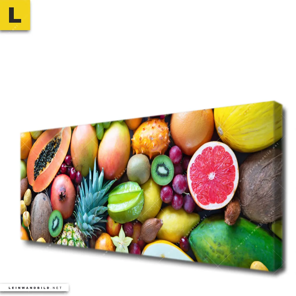 Du konfigurierst Dein individuelles Leinwandbild | Tropische Früchte | Panorama und wir produzieren es NEU für Dich. Unsere Essen - Trinken Leinwände sind KEINE Lagerware. Du bist Dir unsicher, welches Motiv oder Format das richtige für dein individuelles Keilrahmenbild ist, dann helfen wir dir gerne weiter und beraten dich!