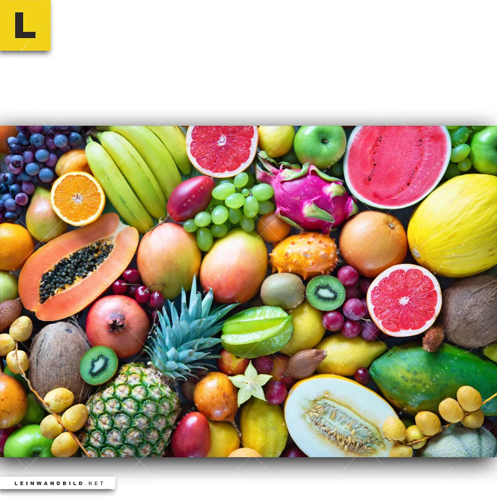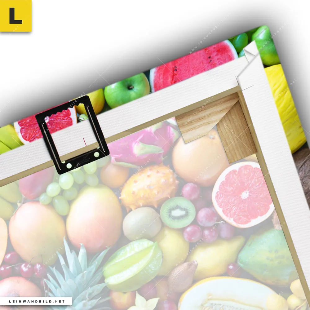 Du konfigurierst Dein individuelles Leinwandbild | Tropische Früchte | Querformat und wir produzieren es NEU für Dich. Unsere Essen - Trinken Leinwände sind KEINE Lagerware. Du bist Dir unsicher, welches Motiv oder Format das richtige für dein individuelles Keilrahmenbild ist, dann helfen wir dir gerne weiter und beraten dich!