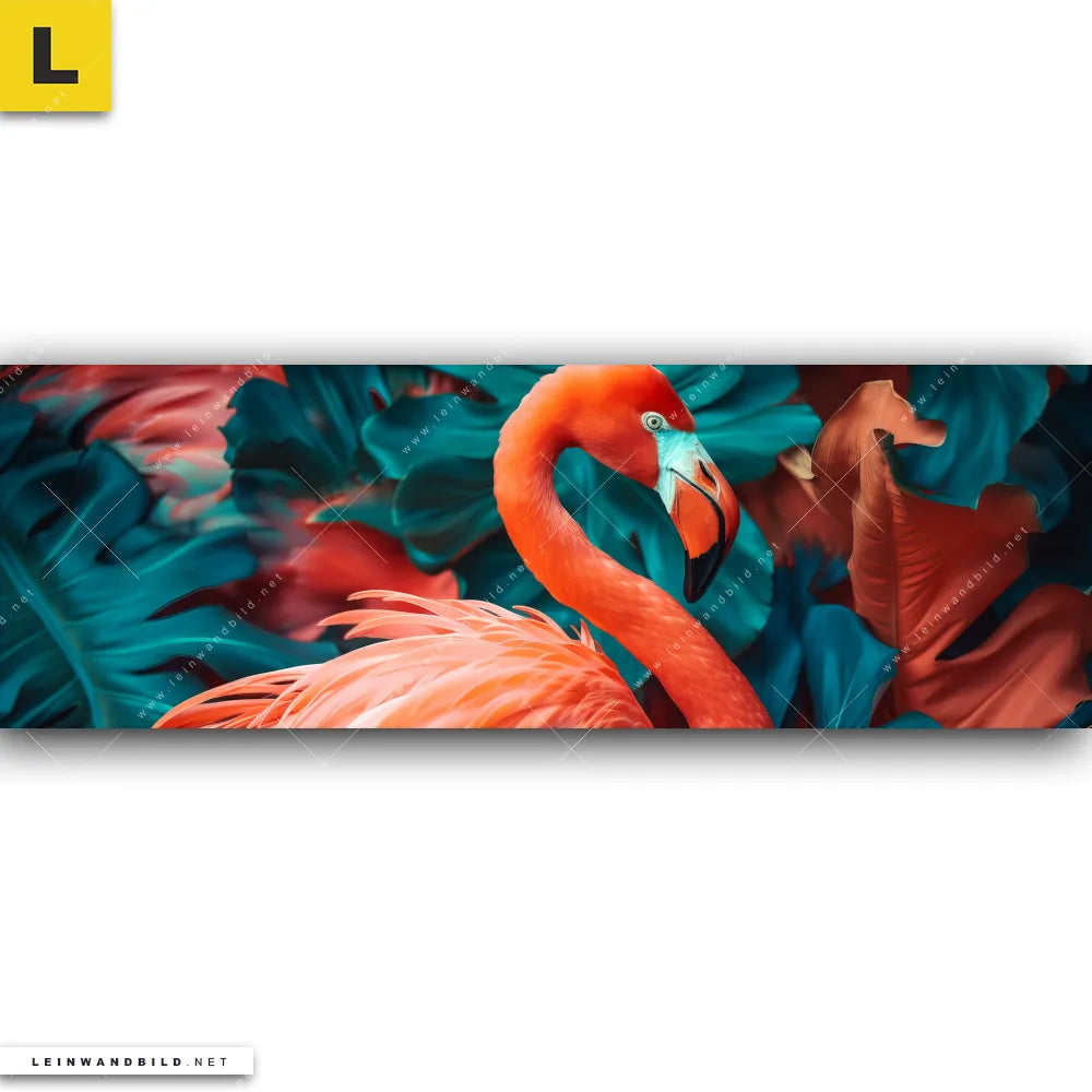 Du konfigurierst Dein individuelles Leinwandbild | Tropischer Flamingo Traum | Panorama und wir produzieren es NEU für Dich. Unsere Tierwelt, Blumen - Botanik Leinwände sind KEINE Lagerware. Du bist Dir unsicher, welches Motiv oder Format das richtige für dein individuelles Keilrahmenbild ist, dann helfen wir dir gerne weiter und beraten dich!
