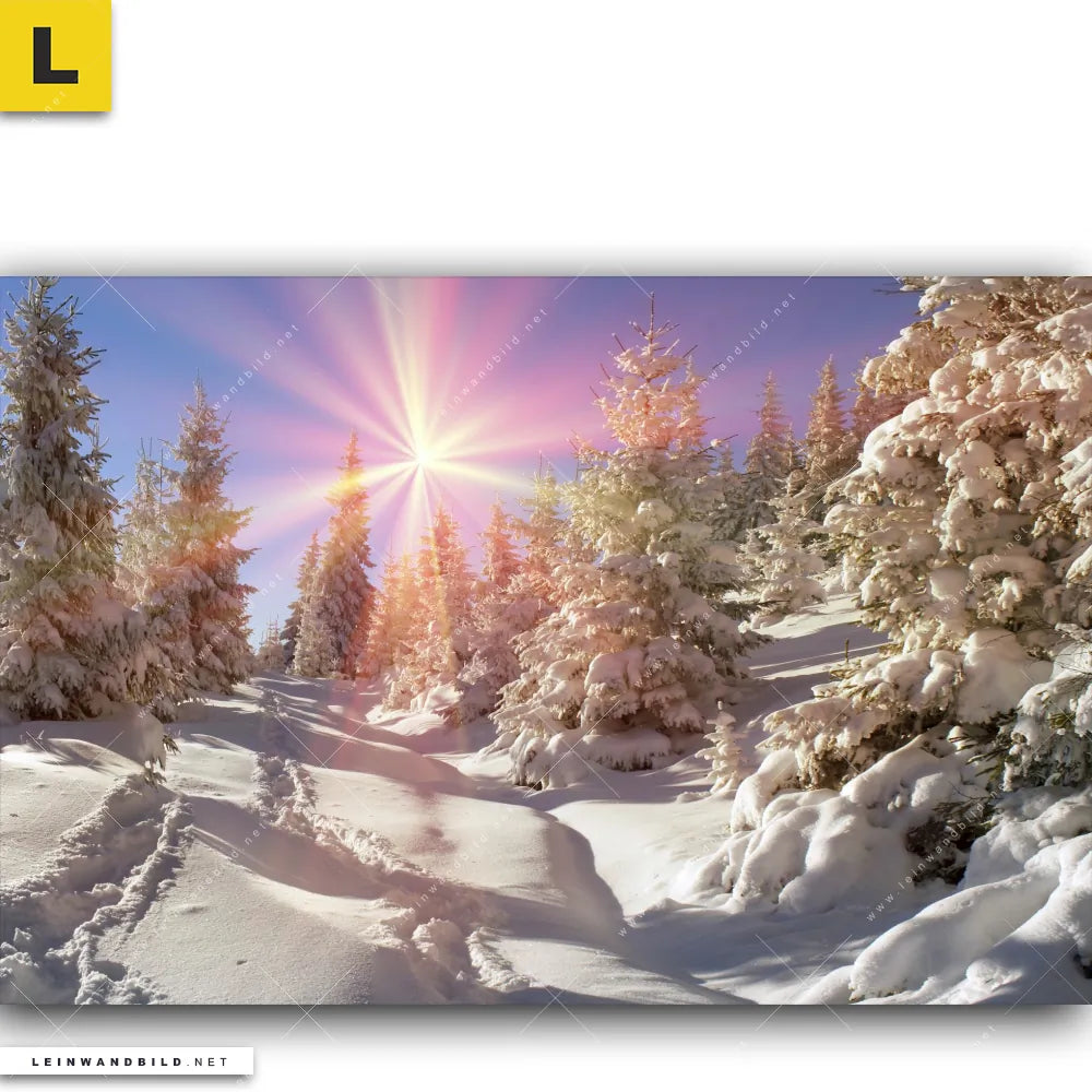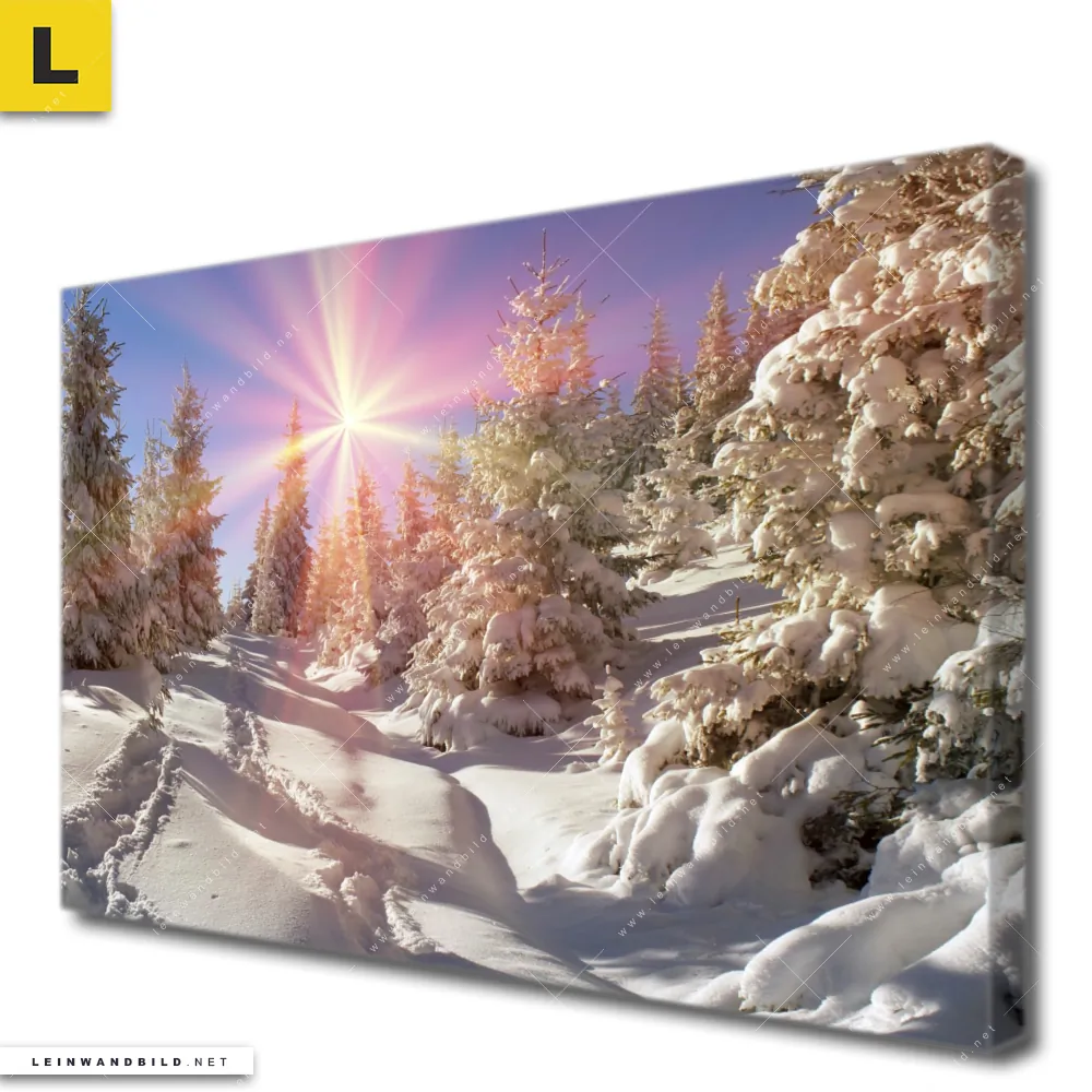 Bitte beachte, dass die Farben, der auf dem Monitor abgebildeten Sonnenaufgang in Schneelandschaft Darstellung, möglicherweise von den Originalfarben abweichen können.