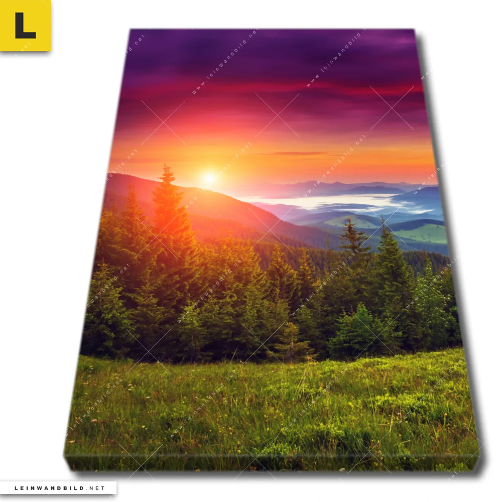 Du konfigurierst Dein individuelles Leinwandbild | Wald bei Sonnenuntergang | Hochformat und wir produzieren es NEU für Dich. Unsere Landschaften, Wald - Bäume Leinwände sind KEINE Lagerware. Du bist Dir unsicher, welches Motiv oder Format das richtige für dein individuelles Keilrahmenbild ist, dann helfen wir dir gerne weiter und beraten dich!