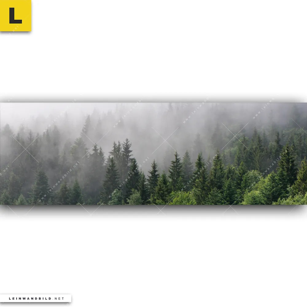 Du konfigurierst Dein individuelles Leinwandbild | Wald im Nebel | Panorama und wir produzieren es NEU für Dich. Unsere Landschaften, Wald - Bäume Leinwände sind KEINE Lagerware. Du bist Dir unsicher, welches Motiv oder Format das richtige für dein individuelles Keilrahmenbild ist, dann helfen wir dir gerne weiter und beraten dich!
