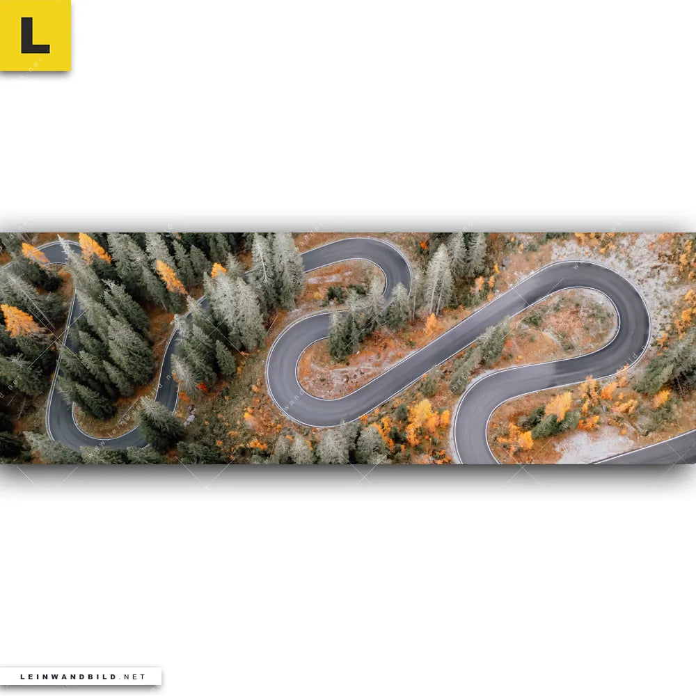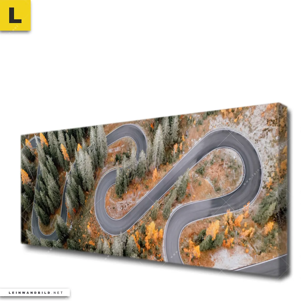 Du konfigurierst Dein individuelles Leinwandbild | Wald & Straße von oben | Panorama und wir produzieren es NEU für Dich. Unsere Landschaften, Wald - Bäume Leinwände sind KEINE Lagerware. Du bist Dir unsicher, welches Motiv oder Format das richtige für dein individuelles Keilrahmenbild ist, dann helfen wir dir gerne weiter und beraten dich!