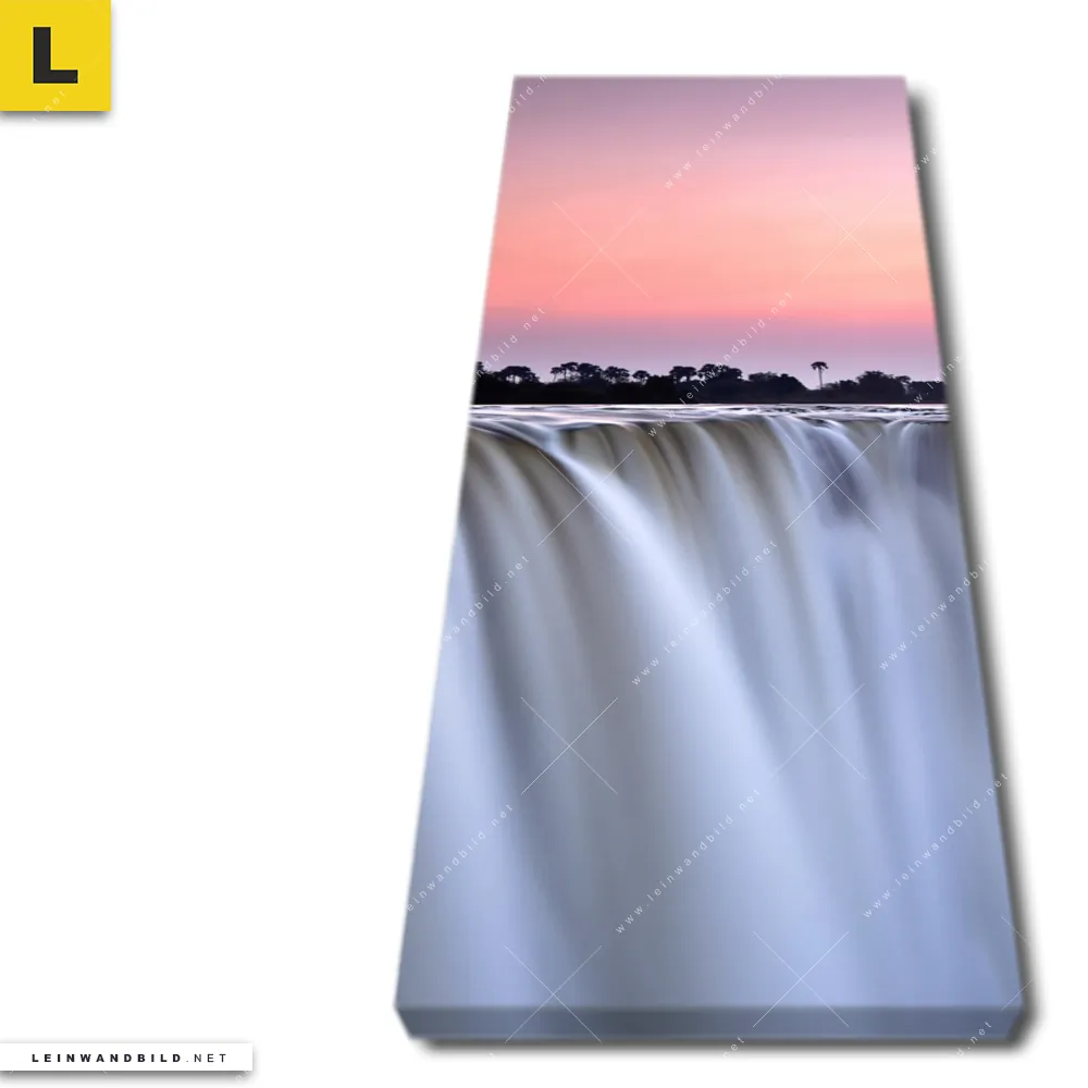 Du konfigurierst Dein individuelles Leinwandbild | Wasserfall bei Abendröte | Schmal und wir produzieren es NEU für Dich. Unsere Landschaften Leinwände sind KEINE Lagerware. Du bist Dir unsicher, welches Motiv oder Format das richtige für dein individuelles Keilrahmenbild ist, dann helfen wir dir gerne weiter und beraten dich!