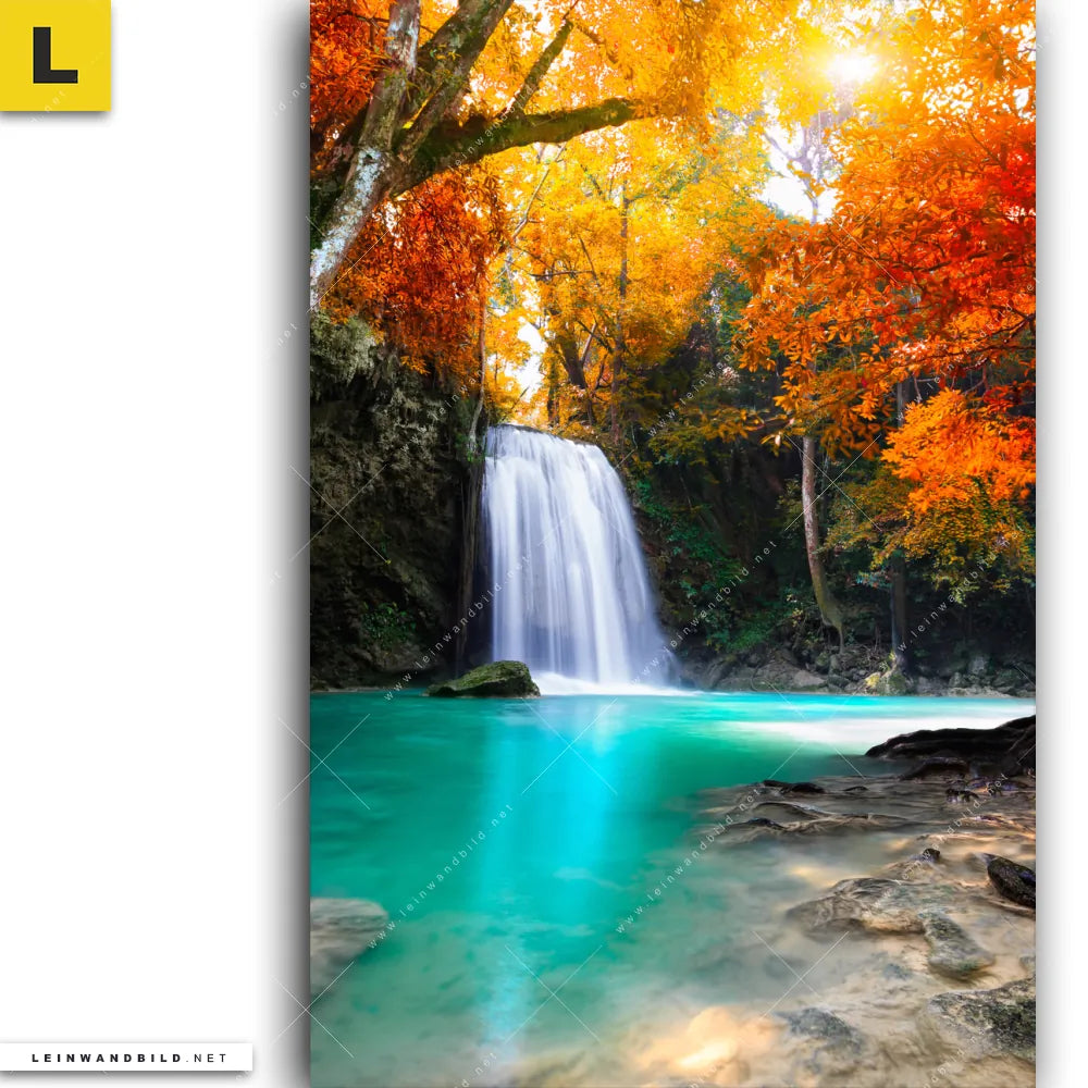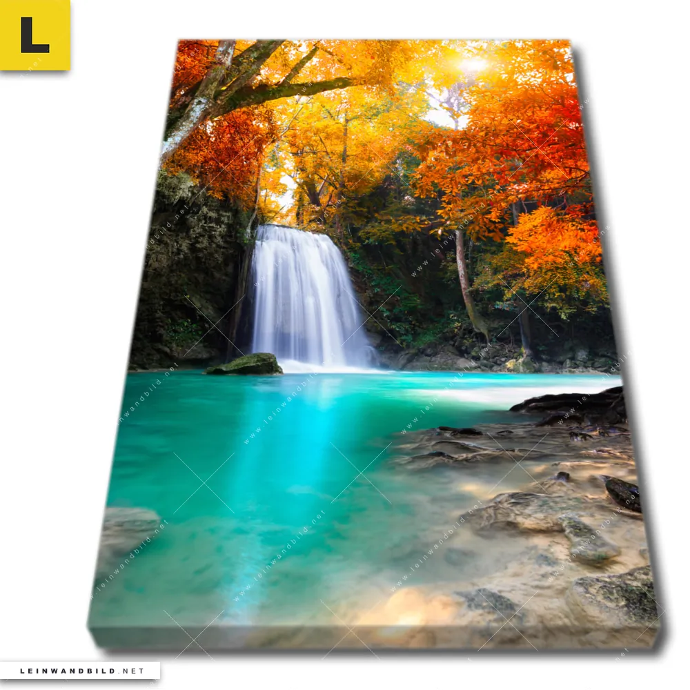 Du bist auf der Suche nach einem XXL Landschaften, Wald - Bäume Leinwandbild und Begriffe wie Wasserfall, Landschaft, Natur, Herbst, Wald haben Dich auf der Suche nach Deinem neuen Hochformat Wandbild auf Leinwand inspiriert? Farben wie Rot, Orange, Türkis, Braun dürfen auf Deinem neuen vertikalen Keilrahmenbild nicht fehlen und Leinwände im Natürlich - Realistisch Stil passen perfekt zu Deinem Einrichtungsstil?