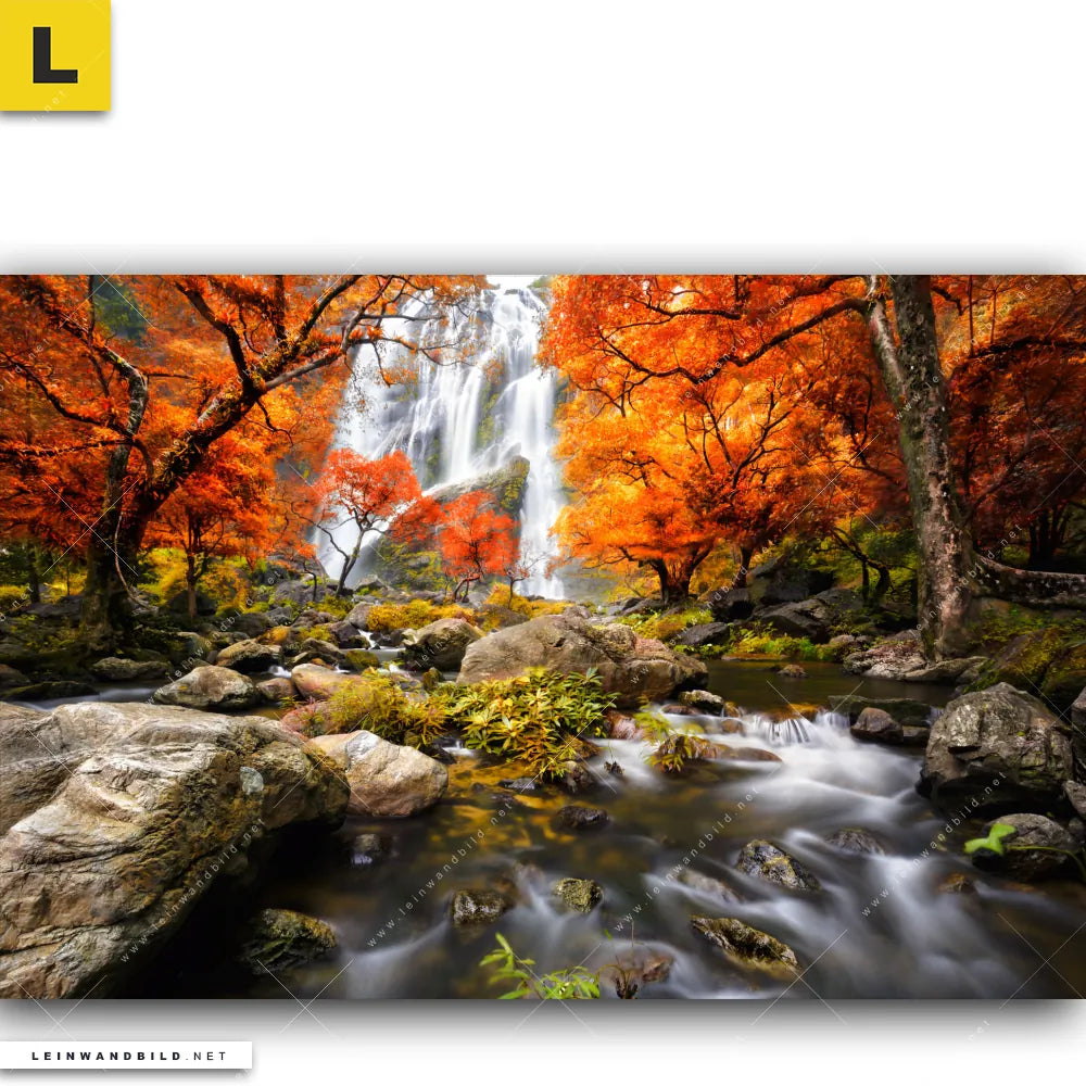 Leinwandbild | Wasserfall in Herbstlandschaft | Querformat
