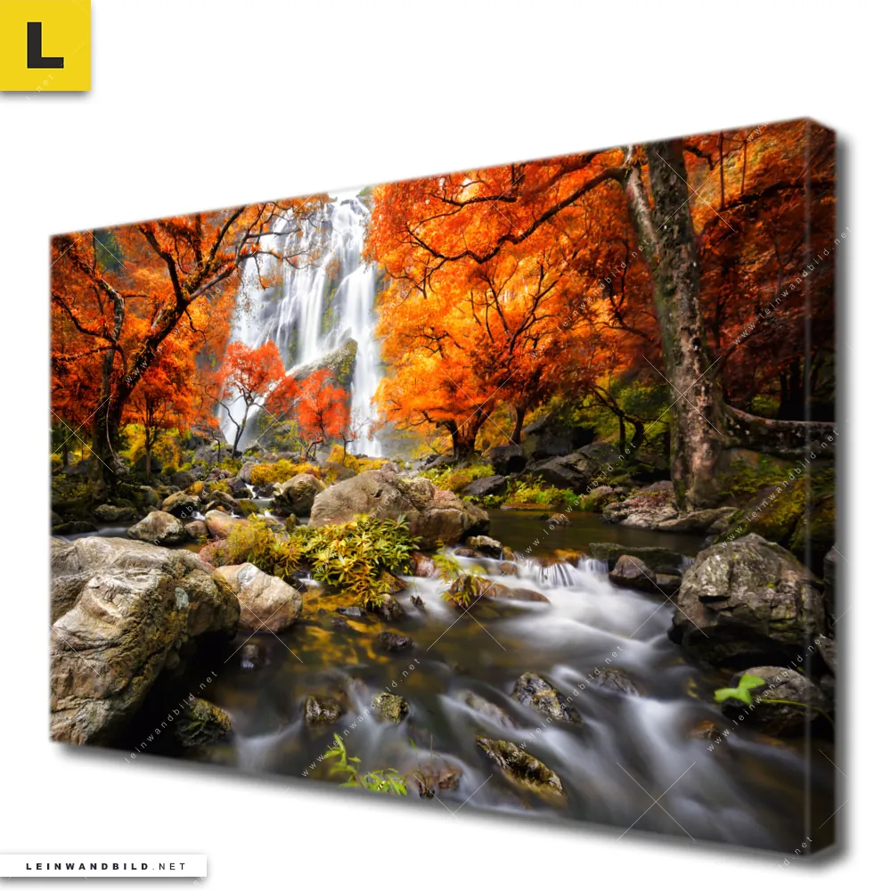 Du konfigurierst Dein individuelles Leinwandbild | Wasserfall in Herbstlandschaft | Querformat und wir produzieren es NEU für Dich. Unsere Landschaften Leinwände sind KEINE Lagerware. Du bist Dir unsicher, welches Motiv oder Format das richtige für dein individuelles Keilrahmenbild ist, dann helfen wir dir gerne weiter und beraten dich!
