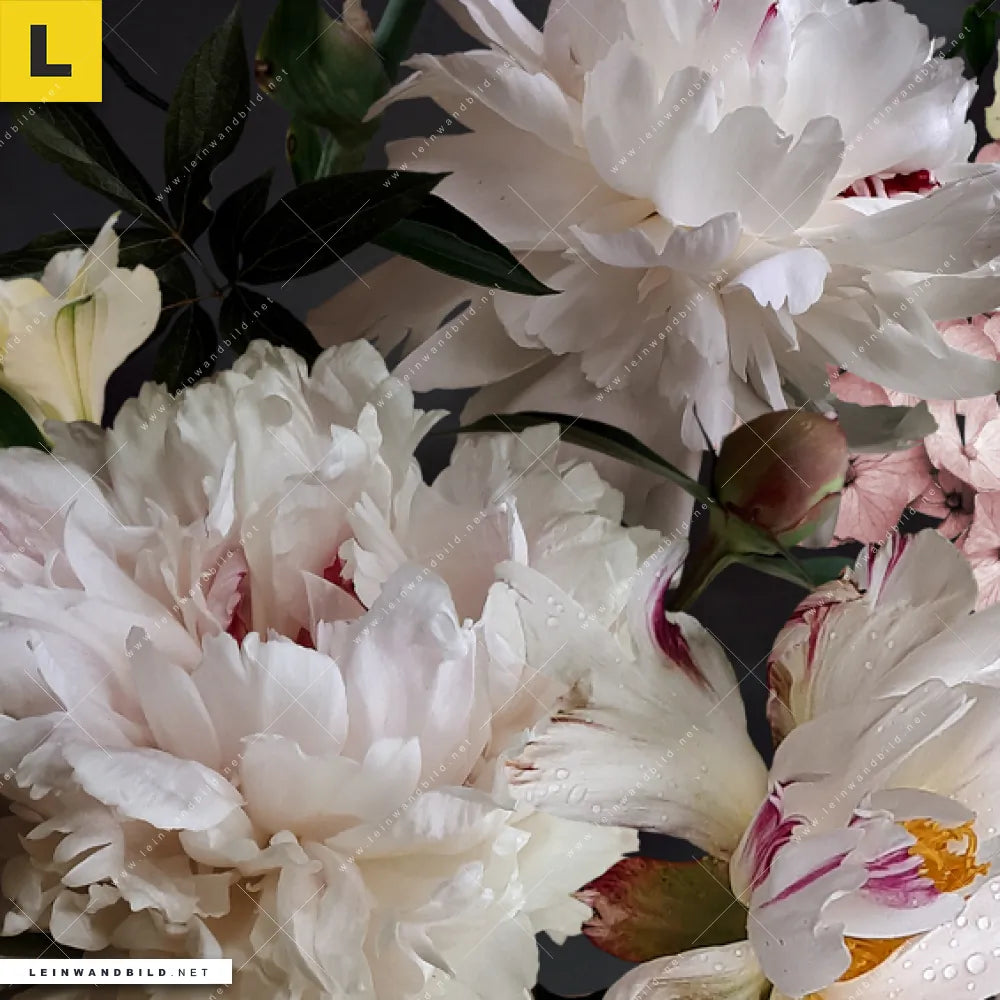 Du konfigurierst Dein individuelles Leinwandbild | Weiße Pfingstrosen | Hochformat und wir produzieren es NEU für Dich. Unsere Blumen - Botanik Leinwände sind KEINE Lagerware. Du bist Dir unsicher, welches Motiv oder Format das richtige für dein individuelles Keilrahmenbild ist, dann helfen wir dir gerne weiter und beraten dich!
