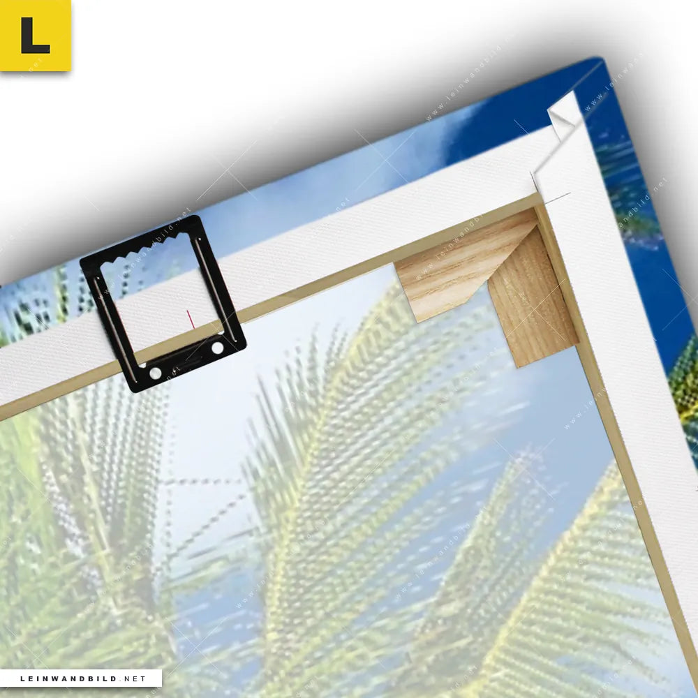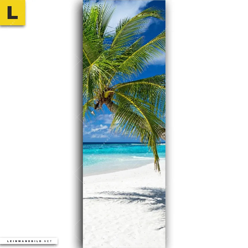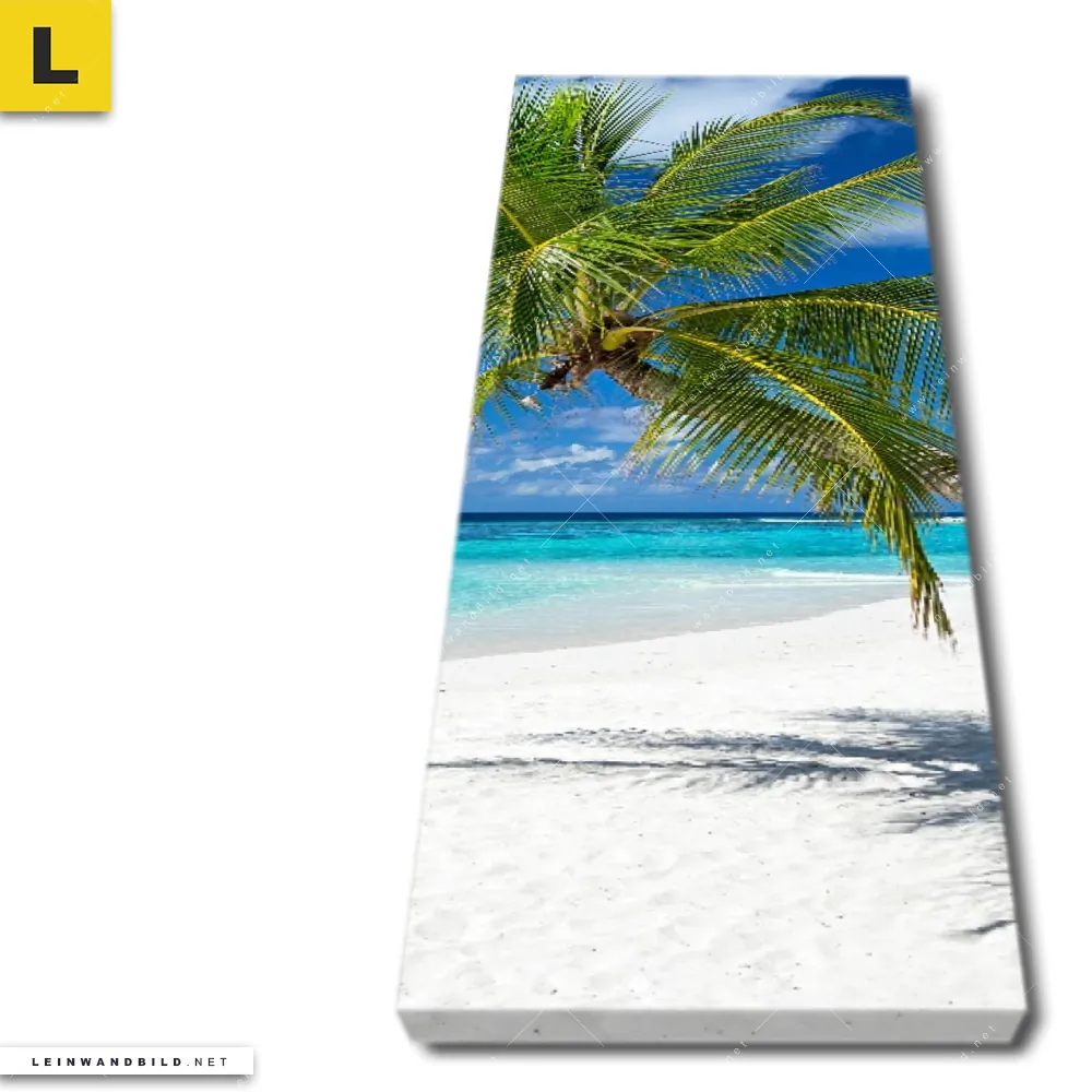Du konfigurierst Dein individuelles Leinwandbild | Weißer Strand & Kokospalme | Schmal und wir produzieren es NEU für Dich. Unsere Landschaften, Strand - Meer Leinwände sind KEINE Lagerware. Du bist Dir unsicher, welches Motiv oder Format das richtige für dein individuelles Keilrahmenbild ist, dann helfen wir dir gerne weiter und beraten dich!