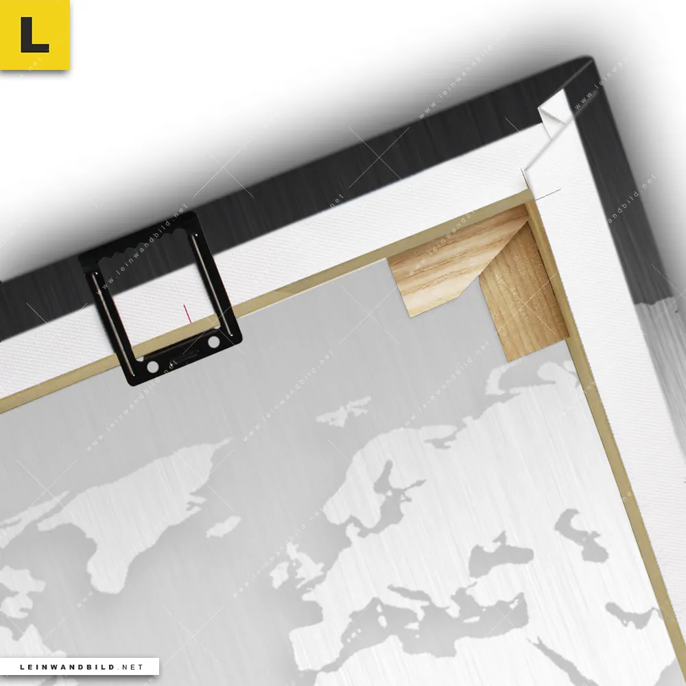 Du konfigurierst Dein individuelles Leinwandbild | Weltkarte Edelstahloptik | Hochformat und wir produzieren es NEU für Dich. Unsere Karten Leinwände sind KEINE Lagerware. Du bist Dir unsicher, welches Motiv oder Format das richtige für dein individuelles Keilrahmenbild ist, dann helfen wir dir gerne weiter und beraten dich!