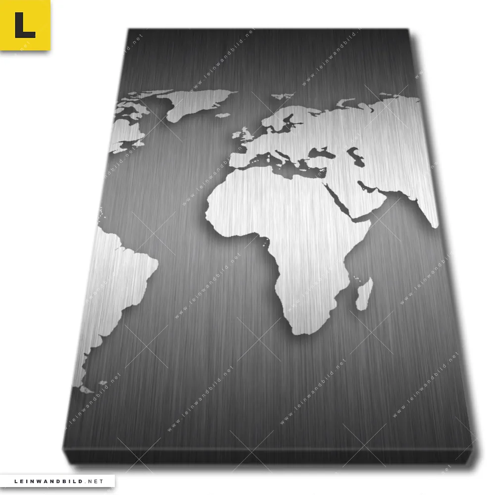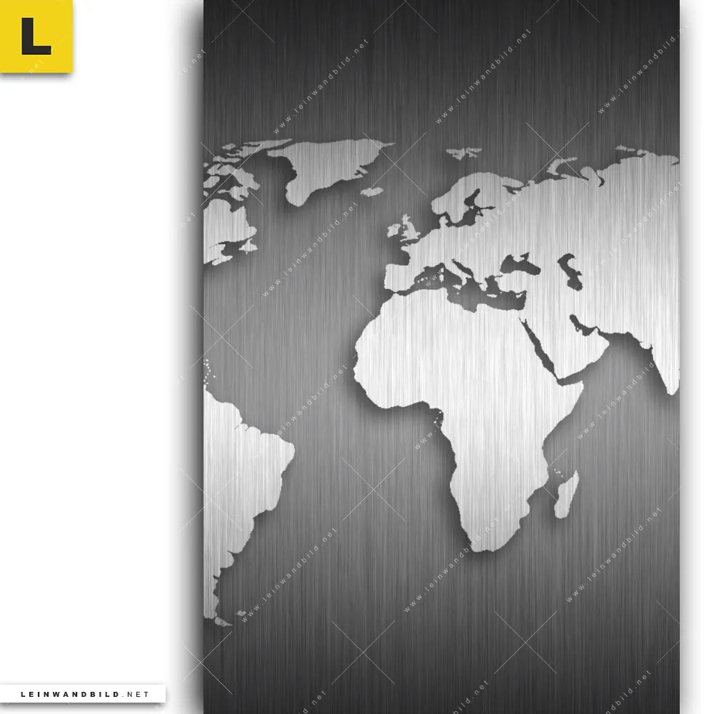 Leinwandbild | Weltkarte Edelstahloptik | Hochformat