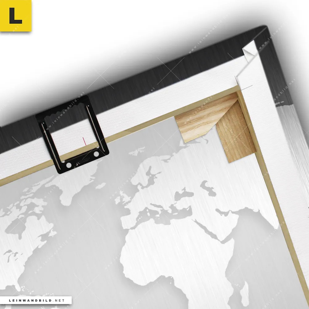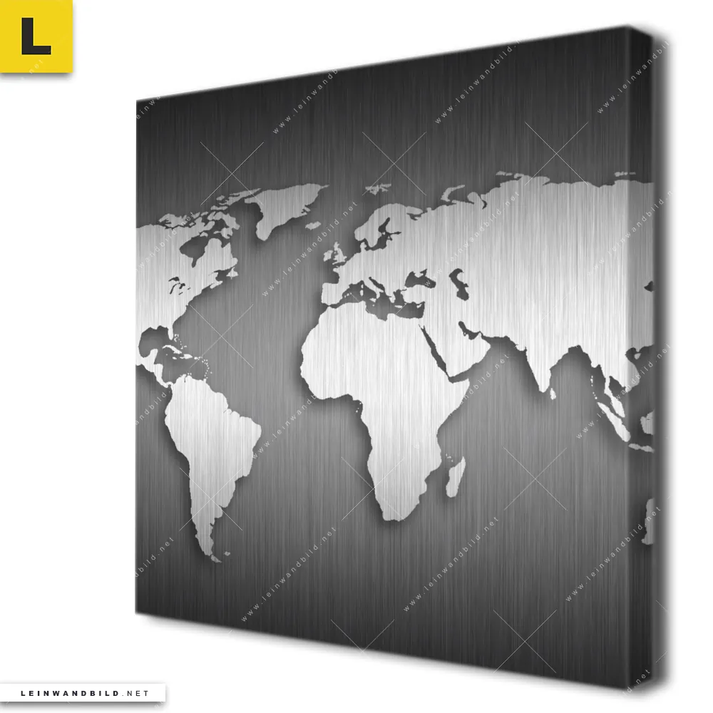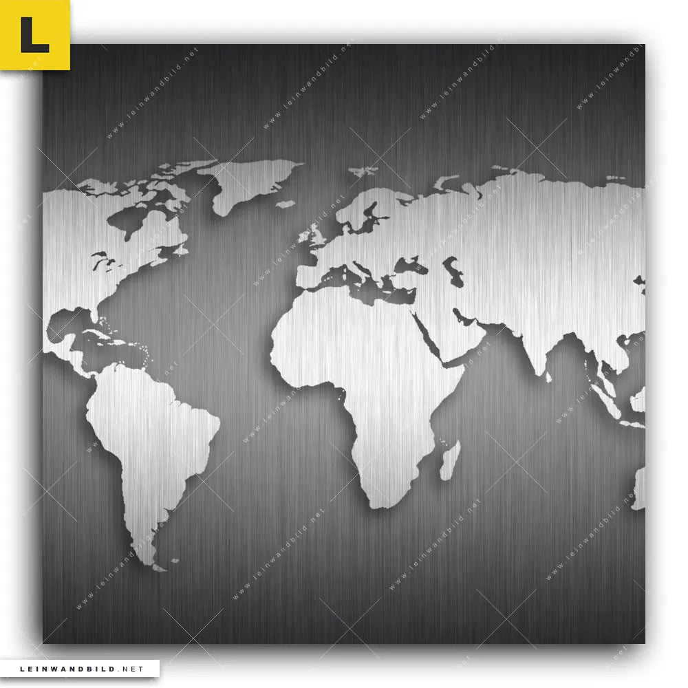 Du konfigurierst Dein individuelles Leinwandbild | Weltkarte Edelstahloptik | Quadrat und wir produzieren es NEU für Dich. Unsere Karten Leinwände sind KEINE Lagerware. Du bist Dir unsicher, welches Motiv oder Format das richtige für dein individuelles Keilrahmenbild ist, dann helfen wir dir gerne weiter und beraten dich!