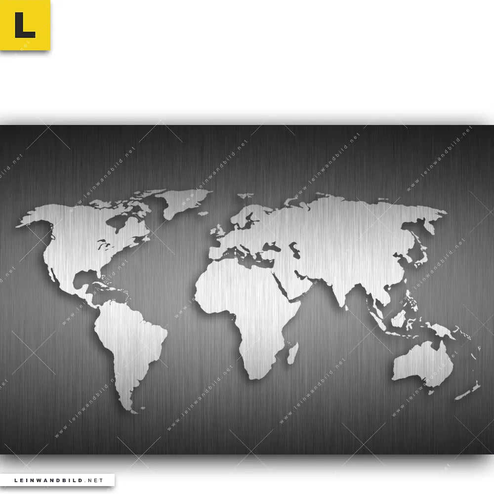 Du konfigurierst Dein individuelles Leinwandbild | Weltkarte Edelstahloptik | Querformat und wir produzieren es NEU für Dich. Unsere Karten Leinwände sind KEINE Lagerware. Du bist Dir unsicher, welches Motiv oder Format das richtige für dein individuelles Keilrahmenbild ist, dann helfen wir dir gerne weiter und beraten dich!