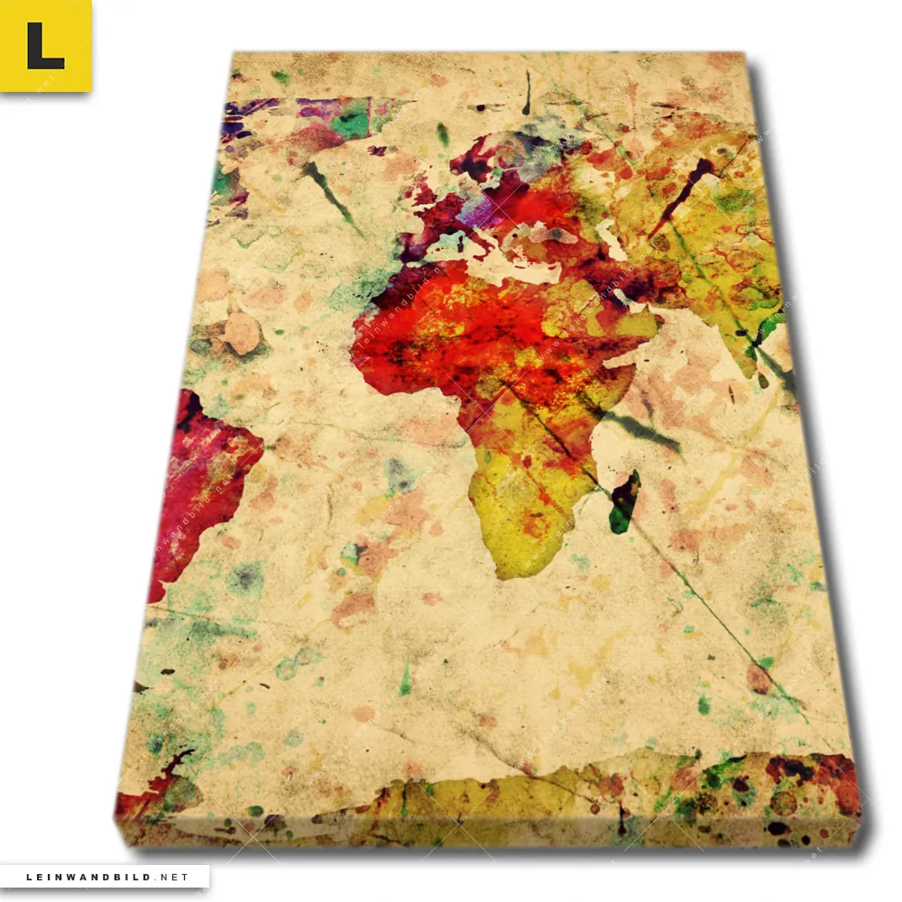 Leinwandbild | Weltkarte Retro Bunt | Hochformat