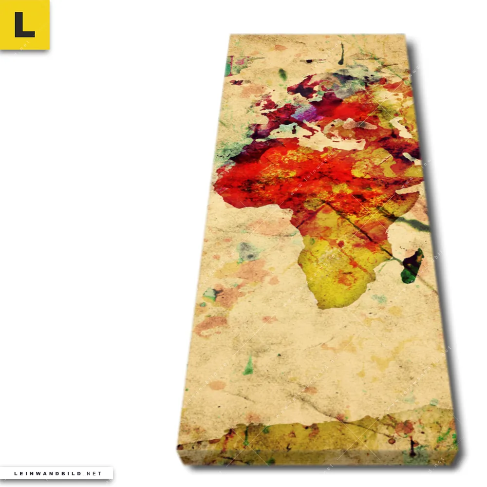 Du konfigurierst Dein individuelles Leinwandbild | Weltkarte Retro Bunt | Schmal und wir produzieren es NEU für Dich. Unsere Karten Leinwände sind KEINE Lagerware. Du bist Dir unsicher, welches Motiv oder Format das richtige für dein individuelles Keilrahmenbild ist, dann helfen wir dir gerne weiter und beraten dich!