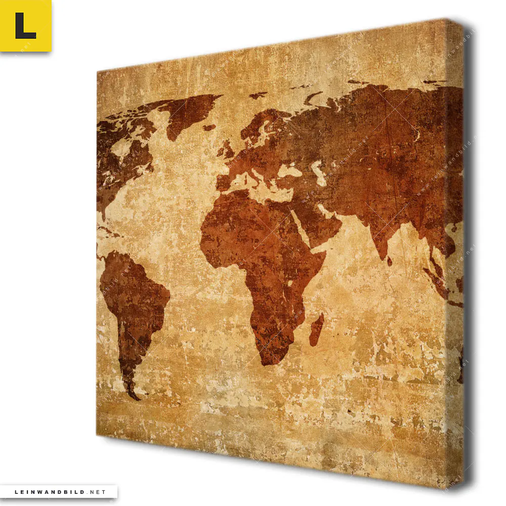 Du konfigurierst Dein individuelles Leinwandbild | Weltkarte Rostoptik | Quadrat und wir produzieren es NEU für Dich. Unsere Karten Leinwände sind KEINE Lagerware. Du bist Dir unsicher, welches Motiv oder Format das richtige für dein individuelles Keilrahmenbild ist, dann helfen wir dir gerne weiter und beraten dich!