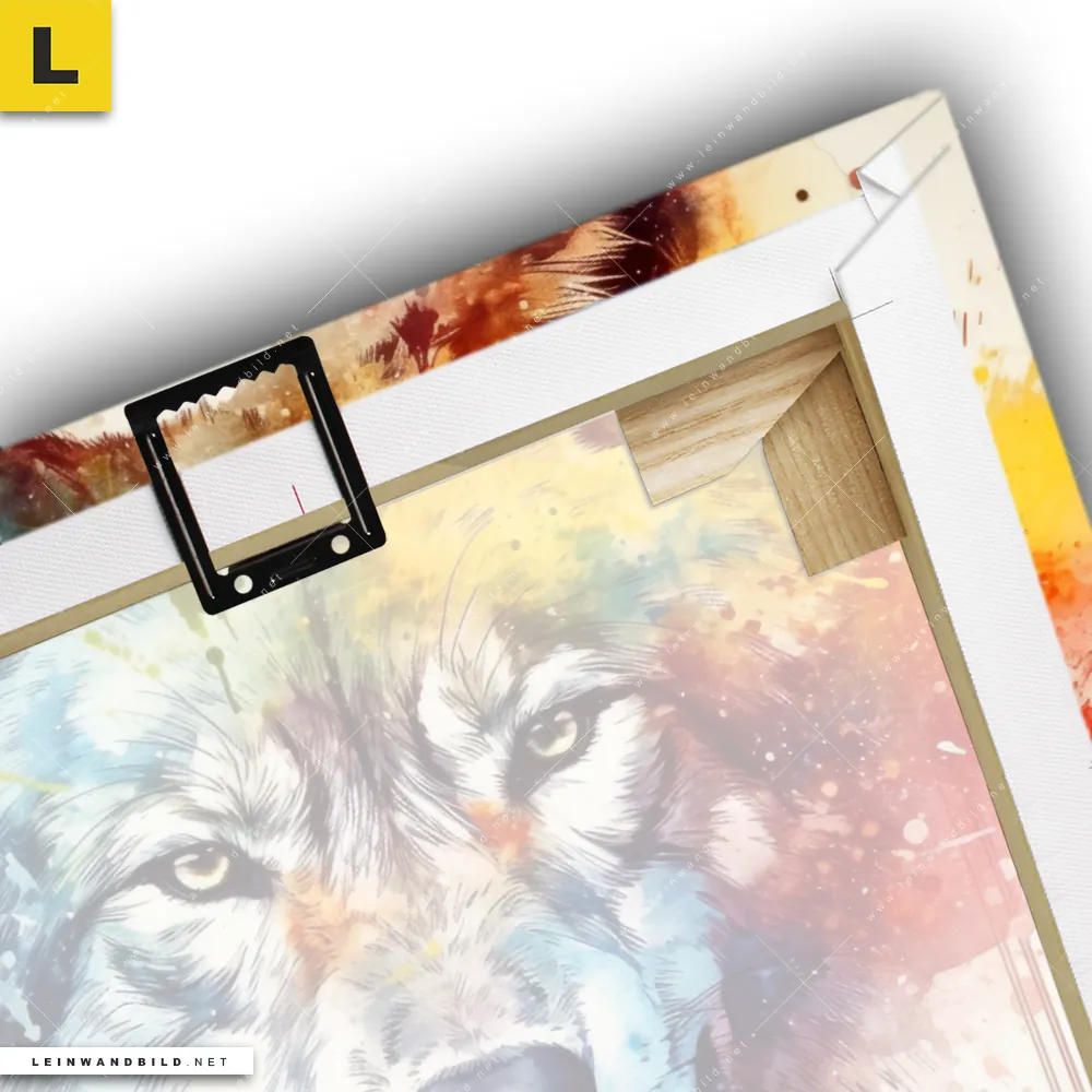 Du konfigurierst Dein individuelles Leinwandbild | Wolf mit bunten Farbspritzern No. 2 | Querformat und wir produzieren es NEU für Dich. Unsere Tierwelt Leinwände sind KEINE Lagerware. Du bist Dir unsicher, welches Motiv oder Format das richtige für dein individuelles Keilrahmenbild ist, dann helfen wir dir gerne weiter und beraten dich!