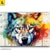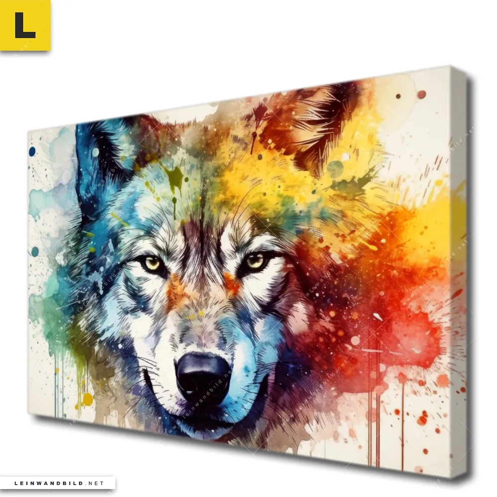 Leinwandbild | Wolf mit bunten Farbspritzern No. 2 | Querformat